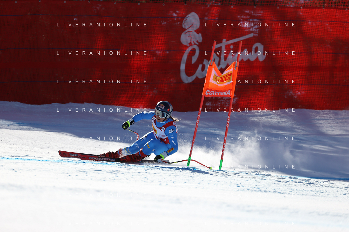 Luca Tedeschi/LMedia - 2022 FIS Ski World Cup - Women Super Giant - alpine ski race January 23 2022 - Olympia slope Cortina Ampezzo, Italy 2022 FIS Ski World Cup - Women Super Giant Photo showing: Sofia Goggia (ITA) @Luca Tedeschi/LiveMedia AG ALDO LIVERANI SAS