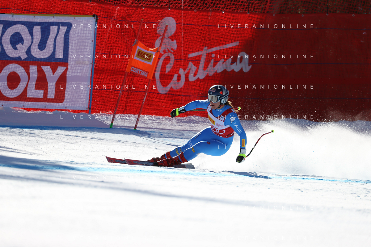 Luca Tedeschi/LMedia - 2022 FIS Ski World Cup - Women Super Giant - alpine ski race January 23 2022 - Olympia slope Cortina Ampezzo, Italy 2022 FIS Ski World Cup - Women Super Giant Photo showing: SHIFFRIN Mikaela (USA) @Luca Tedeschi/LiveMedia AG ALDO LIVERANI SAS