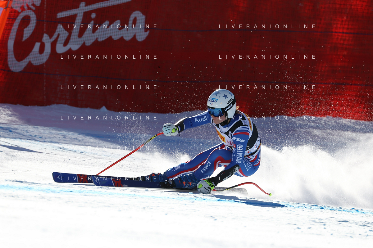 Luca Tedeschi/LMedia - 2022 FIS Ski World Cup - Women Super Giant - alpine ski race January 23 2022 - Olympia slope Cortina Ampezzo, Italy 2022 FIS Ski World Cup - Women Super Giant Photo showing: Romane Miradoli (FRA) @Luca Tedeschi/LiveMedia AG ALDO LIVERANI SAS
