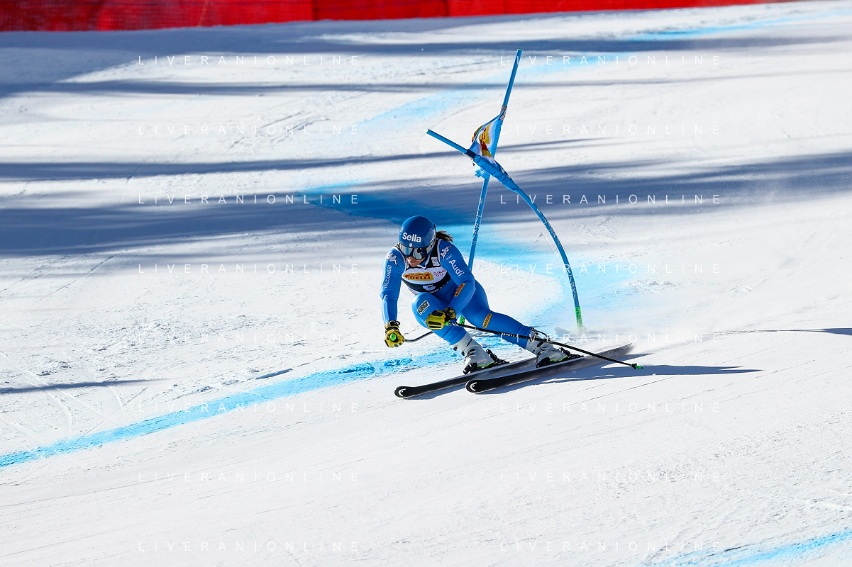 Luca Tedeschi/LMedia - 2022 FIS Ski World Cup - Women Super Giant - alpine ski race January 23 2022 - Olympia slope Cortina Ampezzo, Italyomen Super Giant Photo showing: Elena Curtoni (ITA) @Luca Tedeschi/LiveMedia AG ALDO LIVERANI SAS