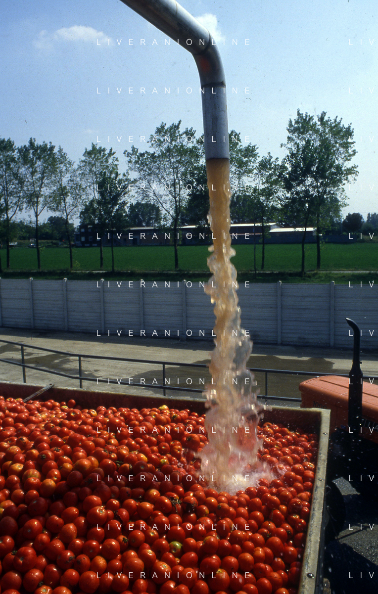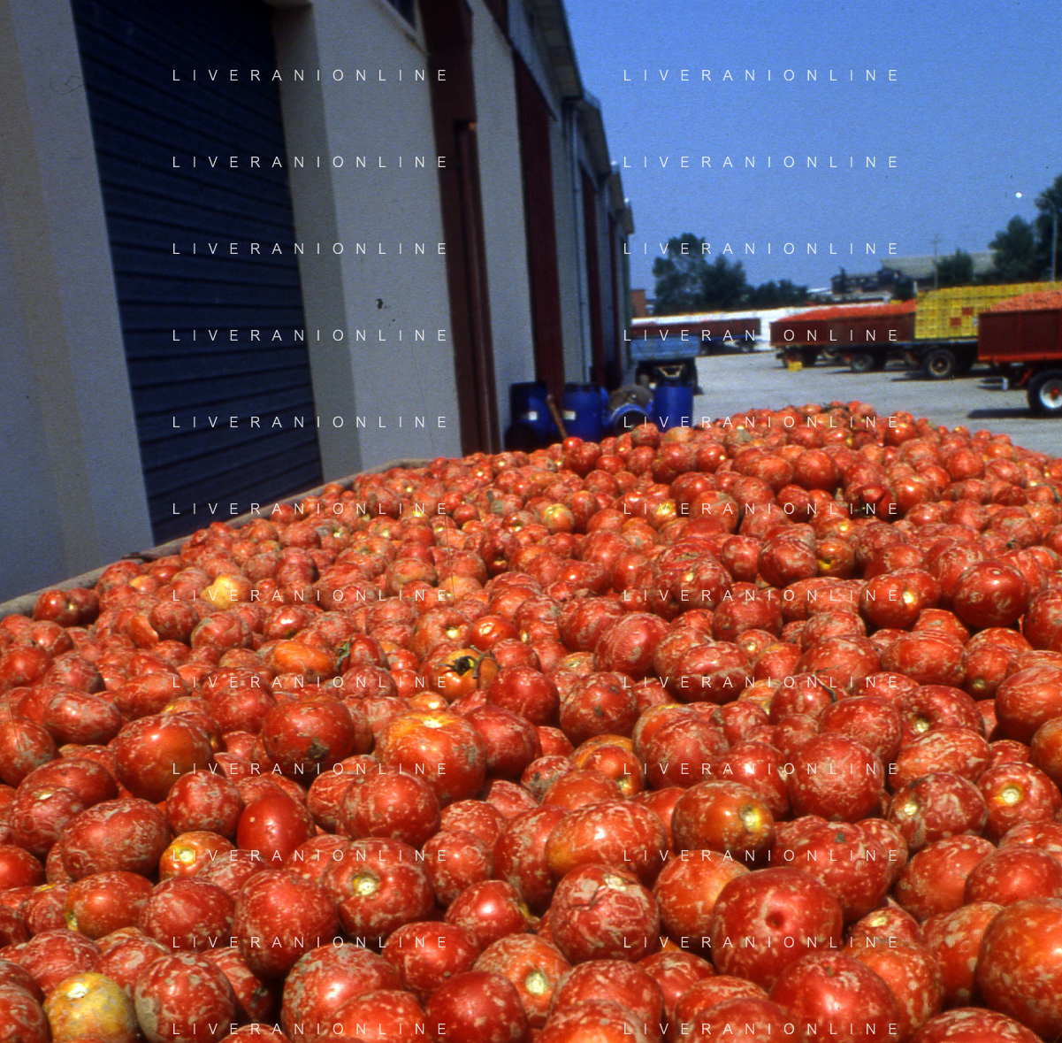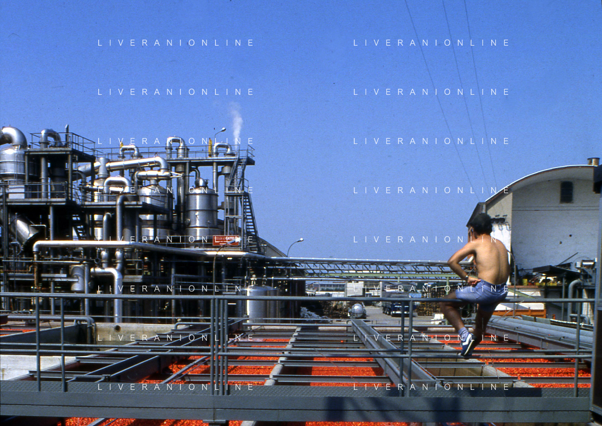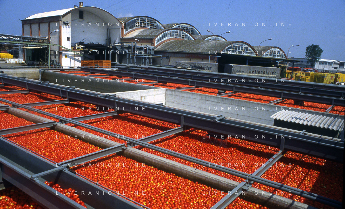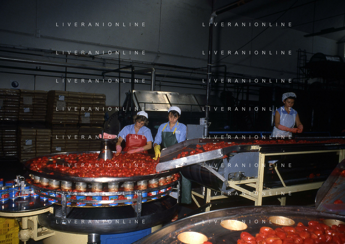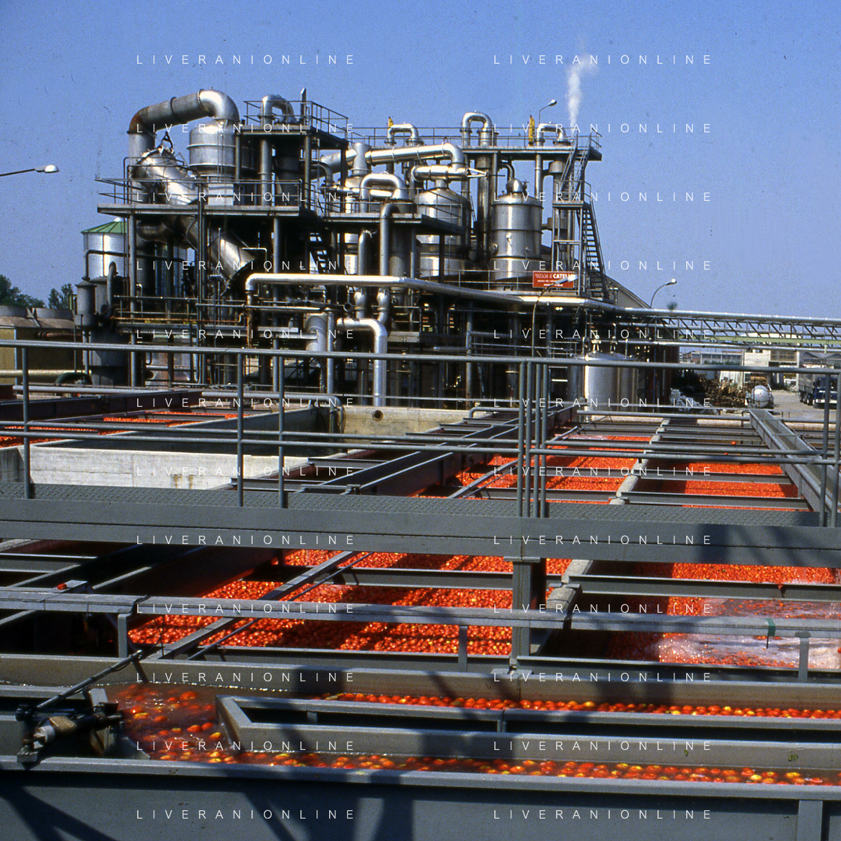 1983 PIACENZA ARP GARIGA STABILIMENTO PER LA PRODUZIONE DEI POMODORI IN SCATOLA PASSATE DI POMODORI E PELATI NELLA FOTO IMMAGINI DELLA PRODUZIONE DI SALSE DI POMODORO,PELATI,PASSATE DI POMODORO AG ALDO LIVERANI SAS