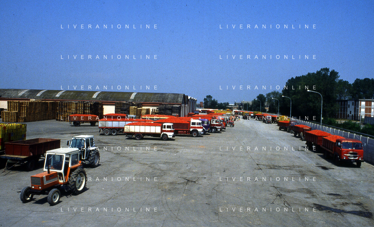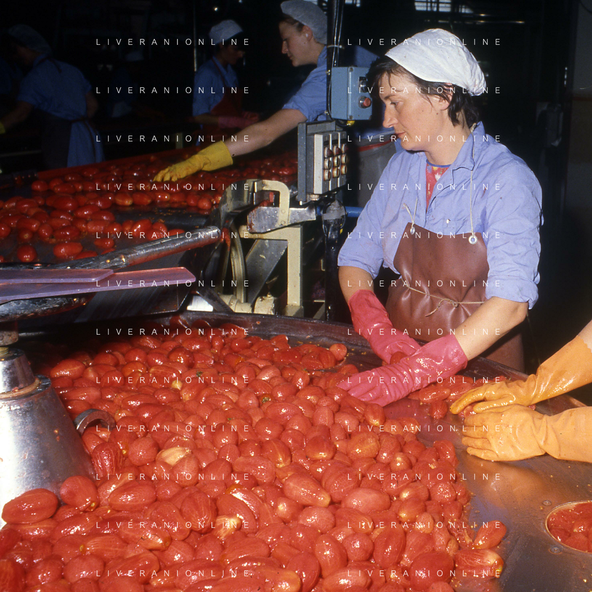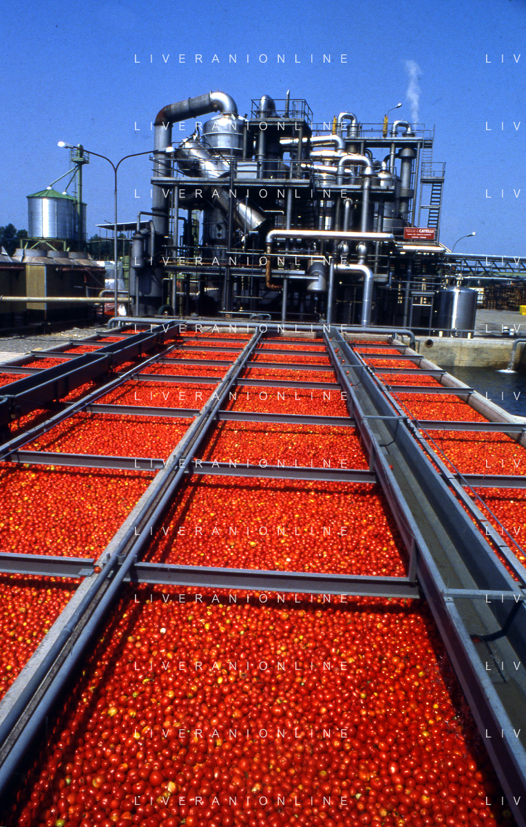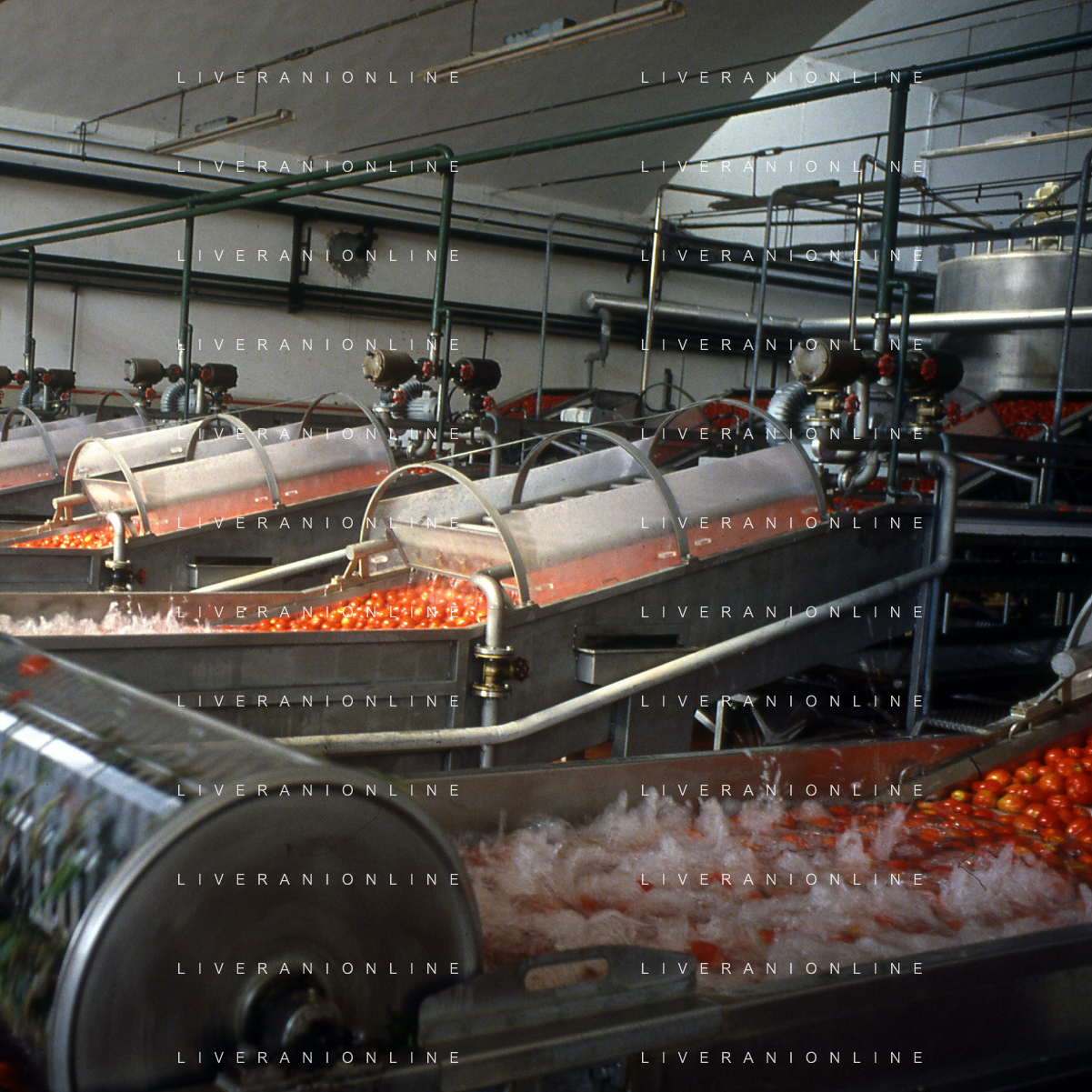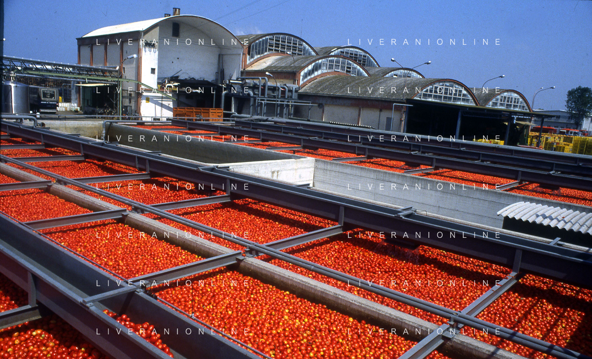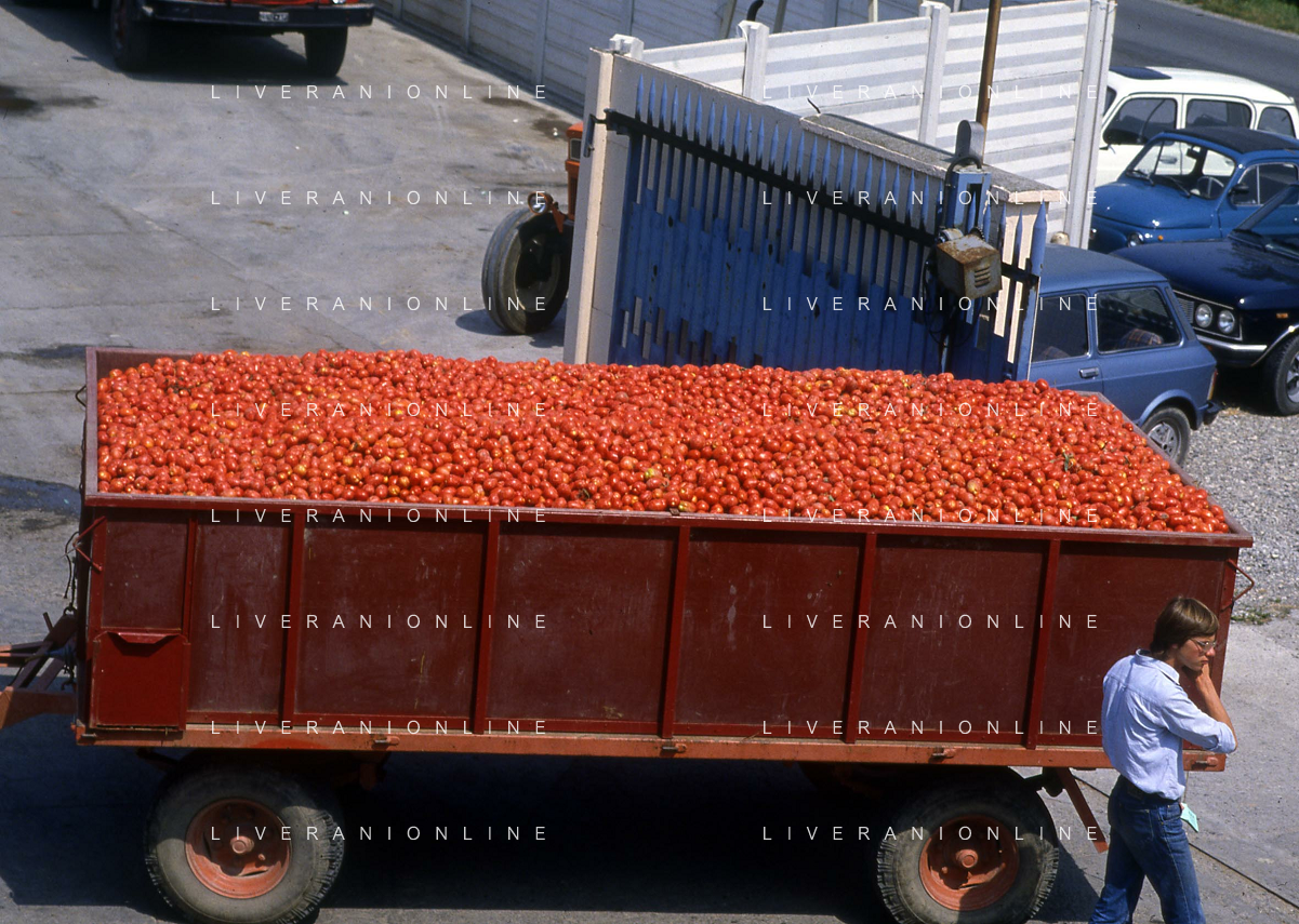 1983 PIACENZA ARP GARIGA STABILIMENTO PER LA PRODUZIONE DEI POMODORI IN SCATOLA PASSATE DI POMODORI E PELATI NELLA FOTO IMMAGINI DELLA PRODUZIONE DI SALSE DI POMODORO,PELATI,PASSATE DI POMODORO AG ALDO LIVERANI SAS