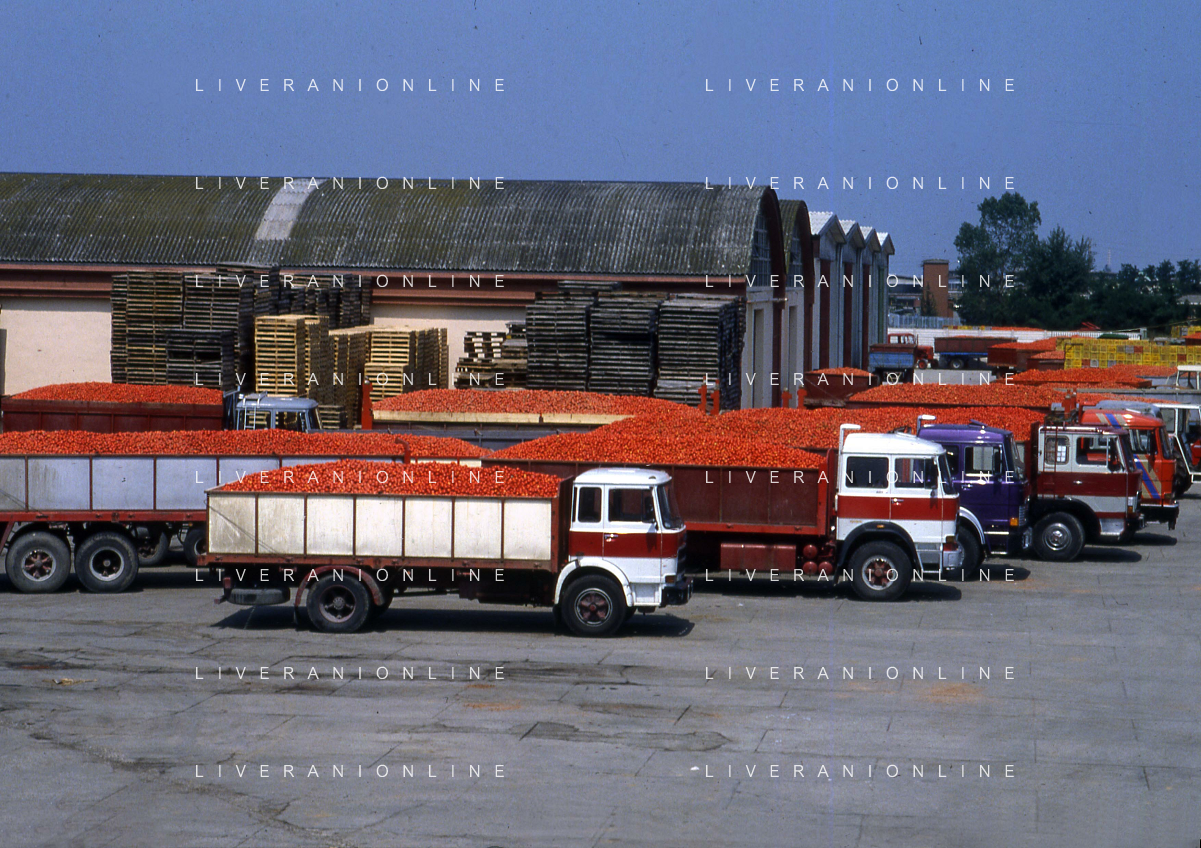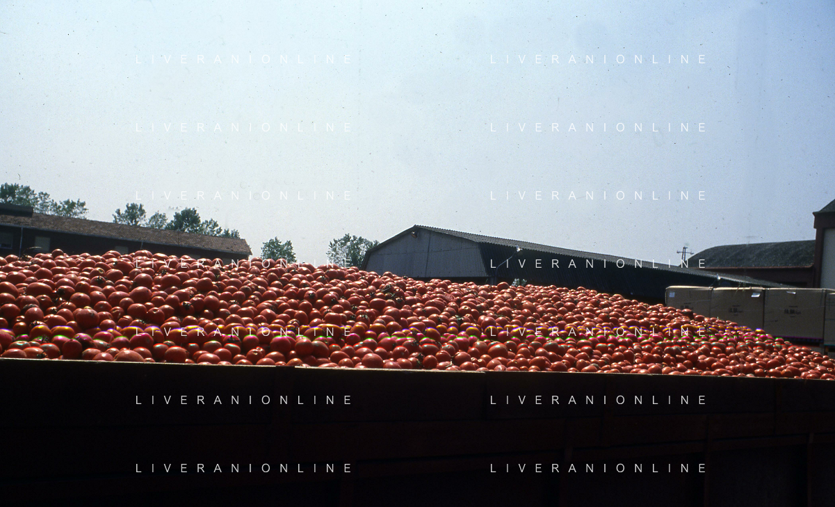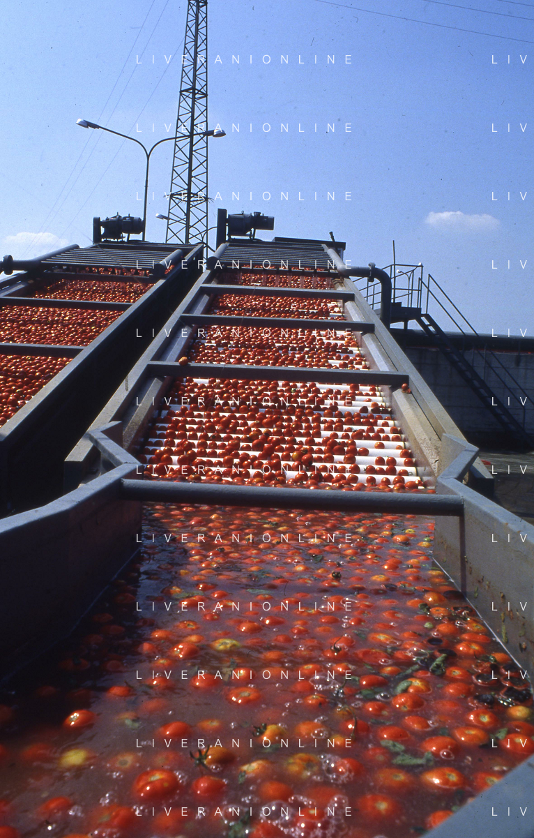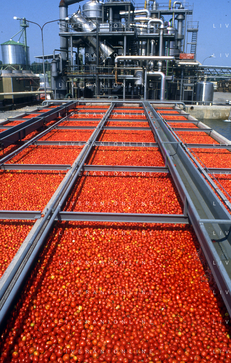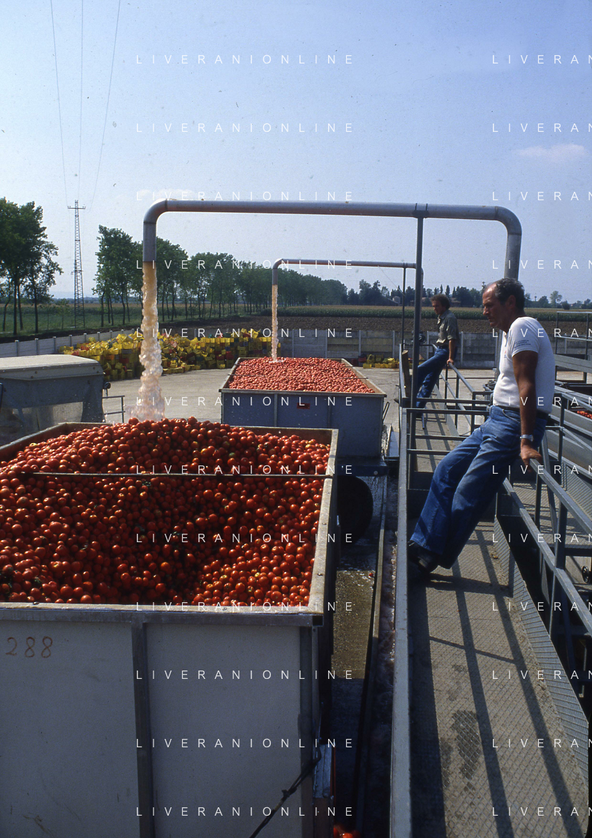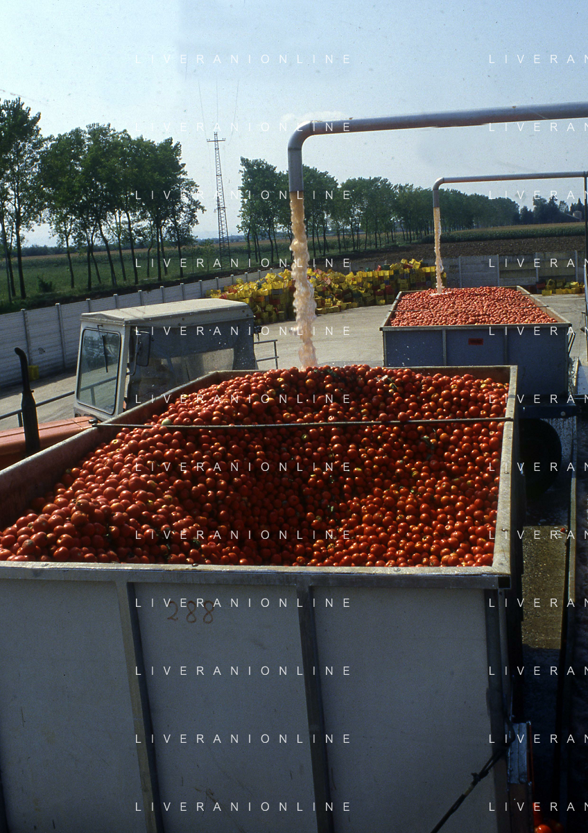 1983 PIACENZA ARP GARIGA STABILIMENTO PER LA PRODUZIONE DEI POMODORI IN SCATOLA PASSATE DI POMODORI E PELATI NELLA FOTO IMMAGINI DELLA PRODUZIONE DI SALSE DI POMODORO,PELATI,PASSATE DI POMODORO AG ALDO LIVERANI SAS