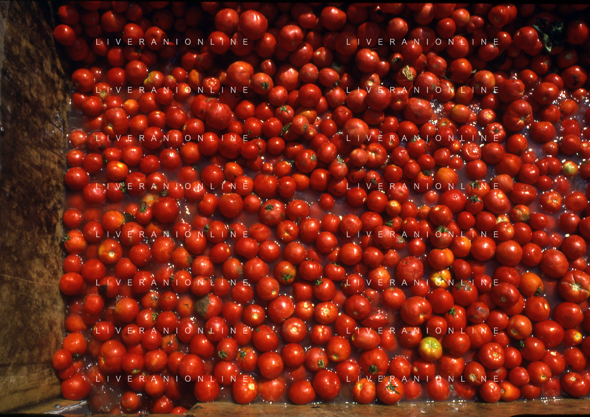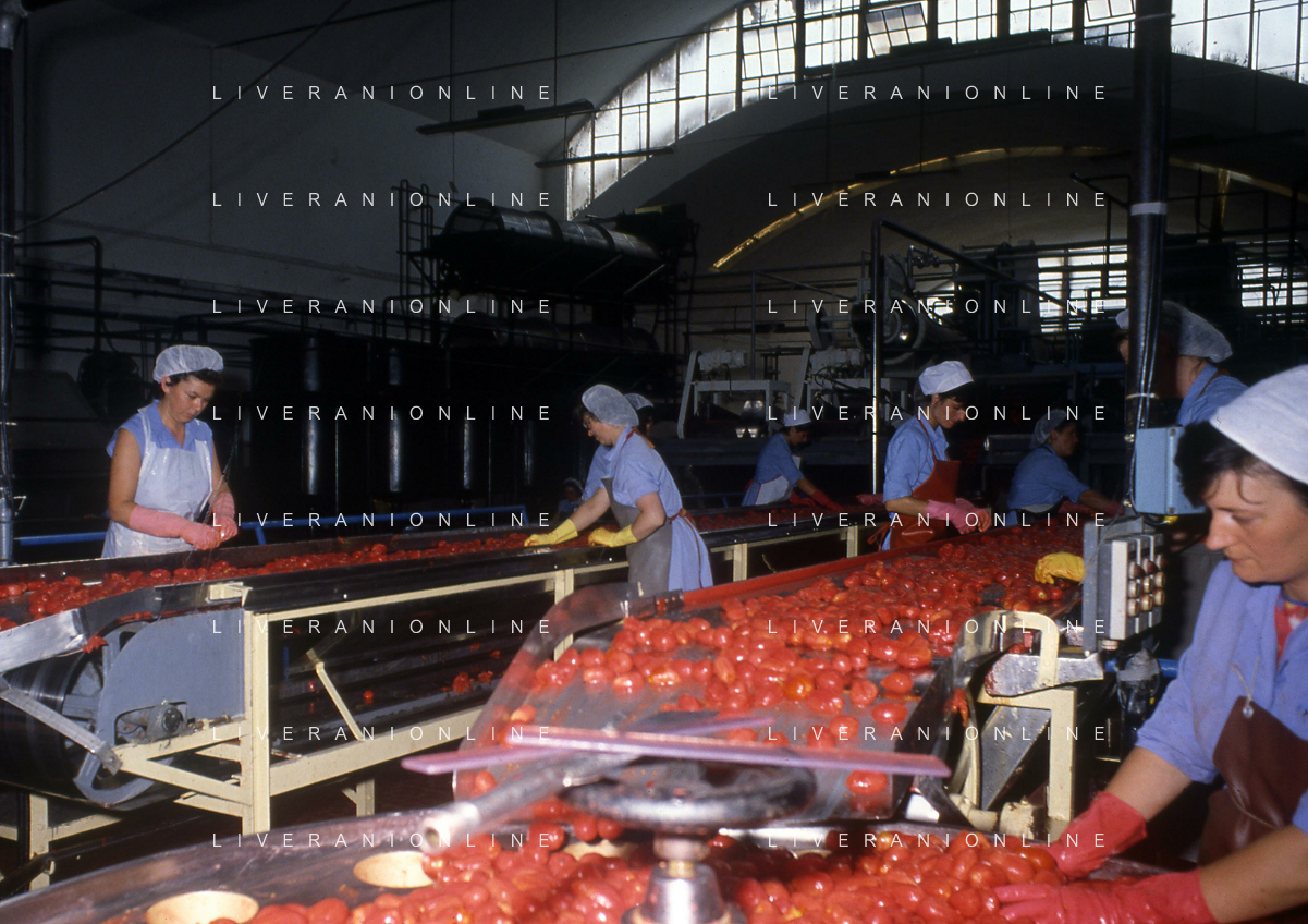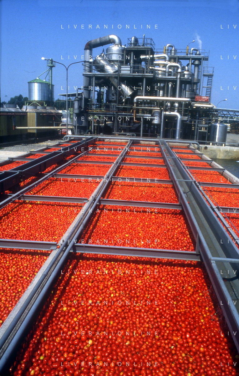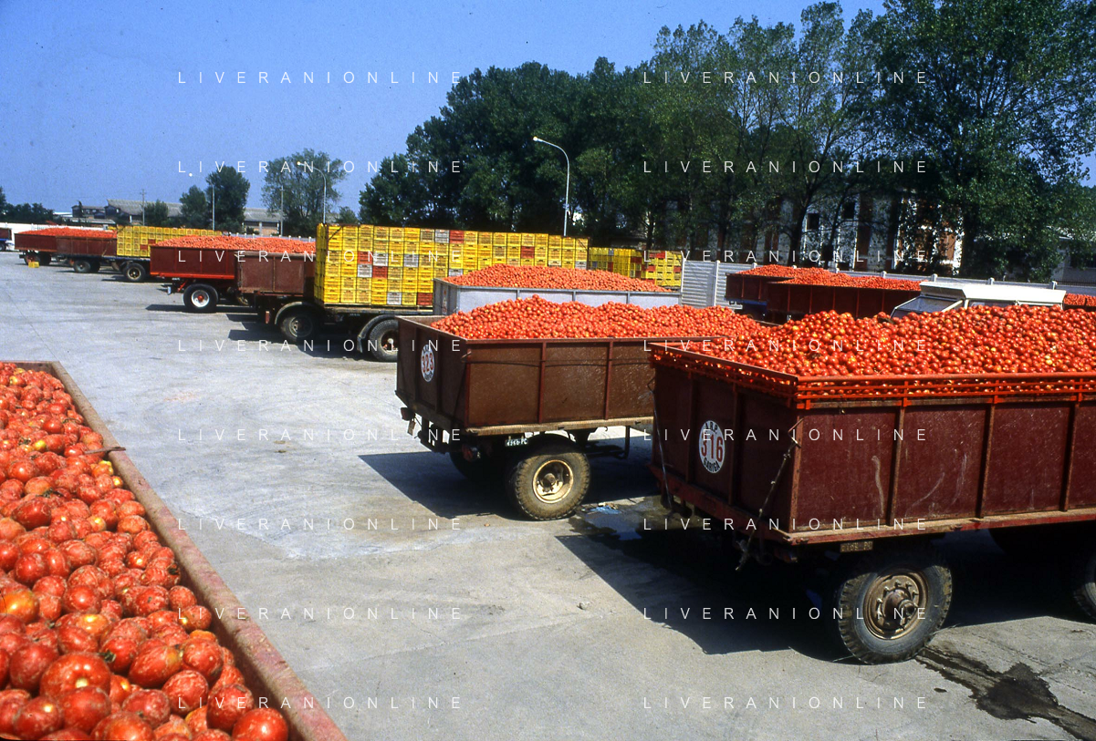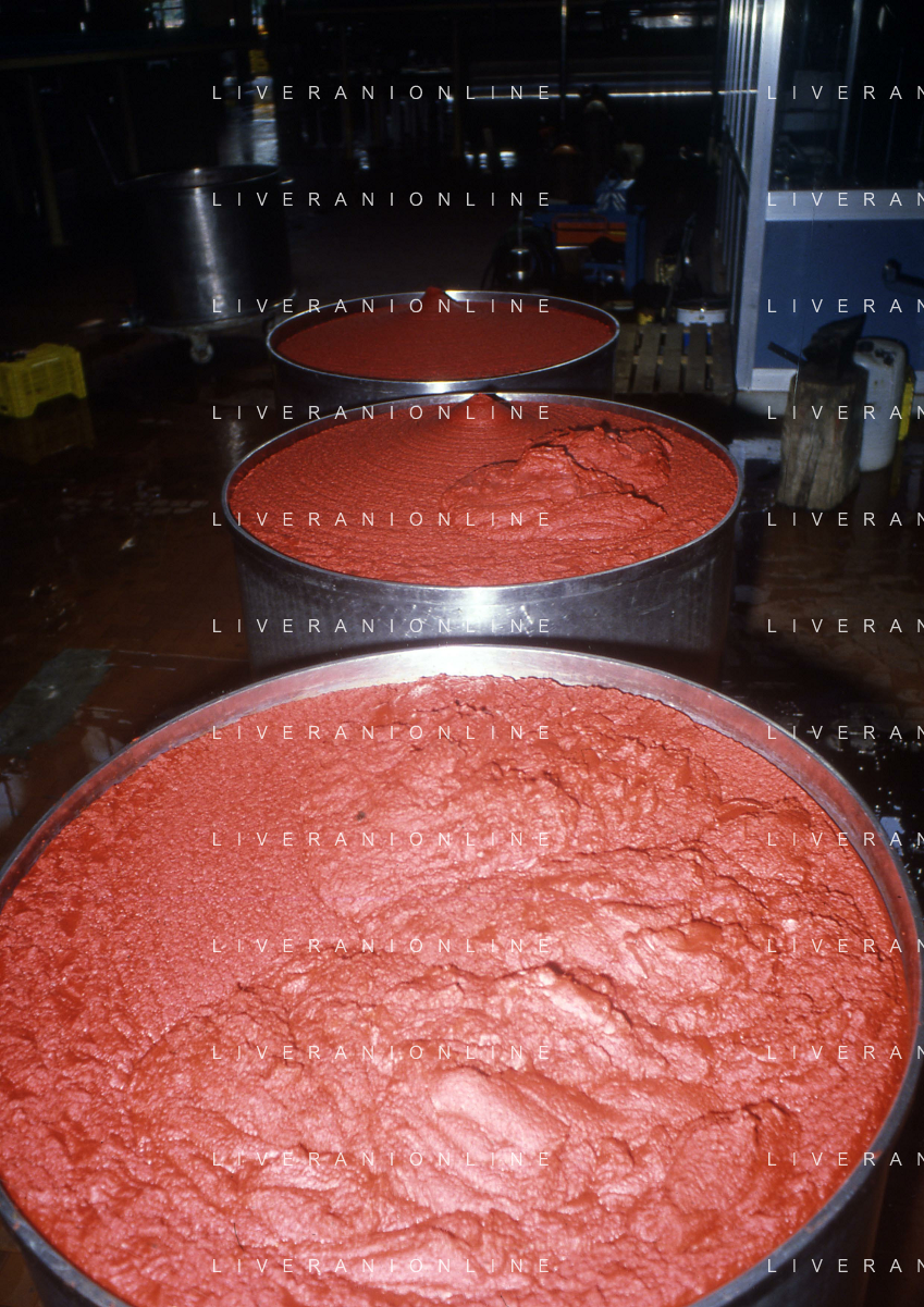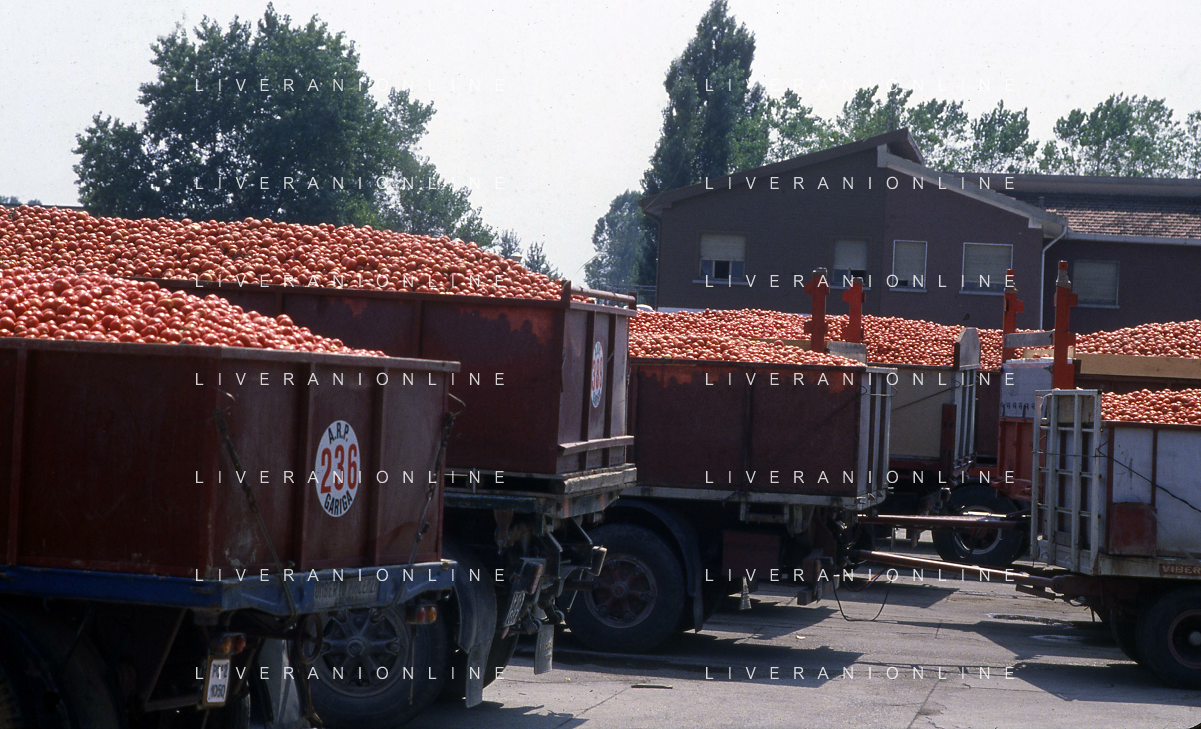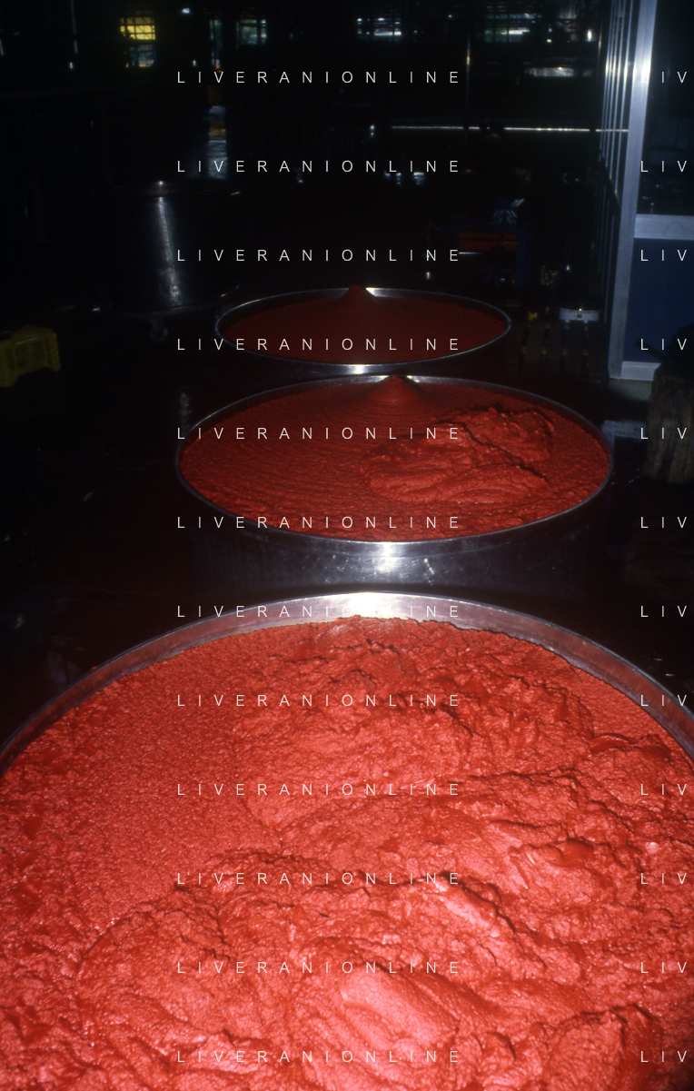 1983 PIACENZA ARP GARIGA STABILIMENTO PER LA PRODUZIONE DEI POMODORI IN SCATOLA PASSATE DI POMODORI E PELATI NELLA FOTO IMMAGINI DELLA PRODUZIONE DI SALSE DI POMODORO,PELATI,PASSATE DI POMODORO AG ALDO LIVERANI SAS
