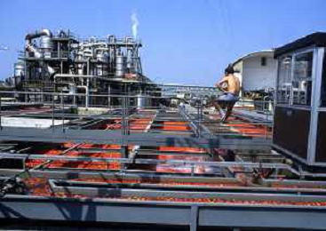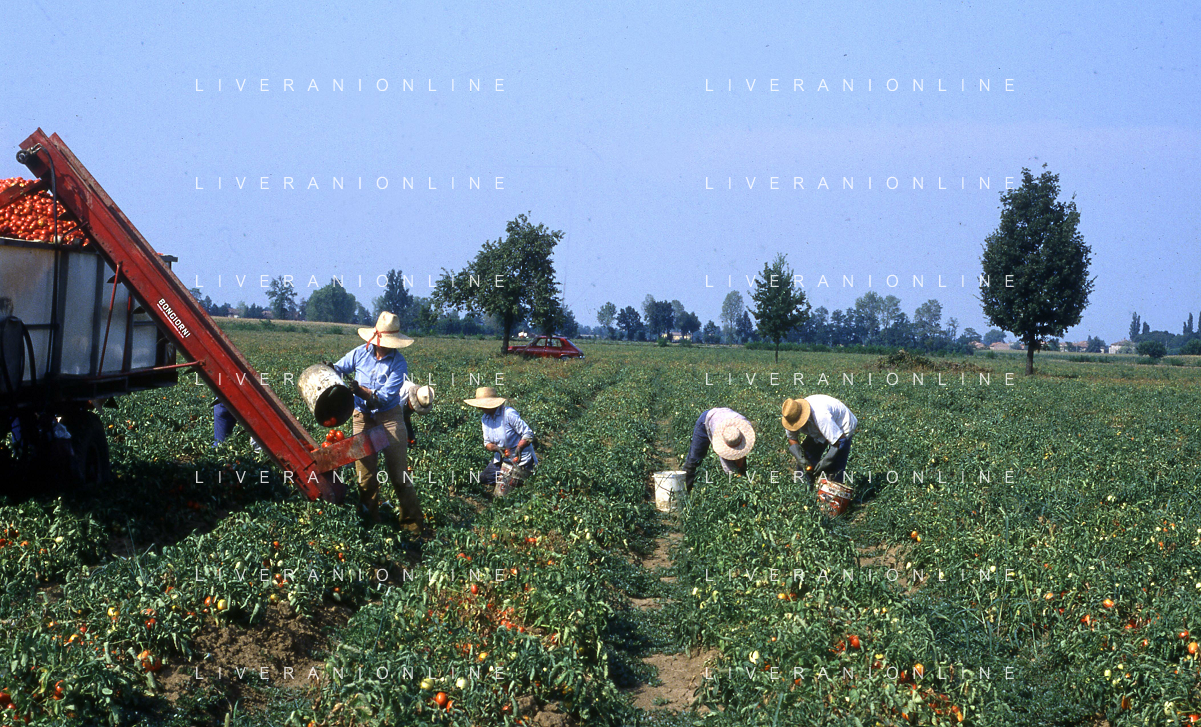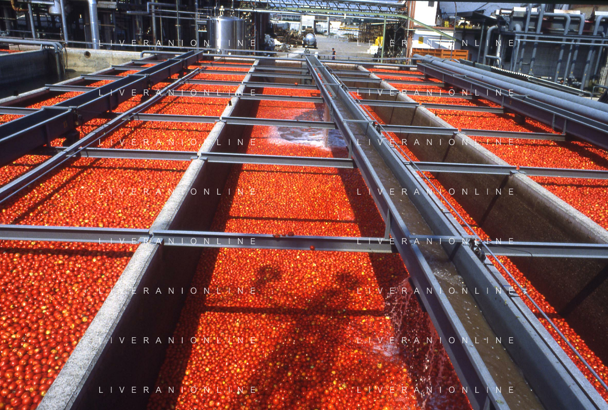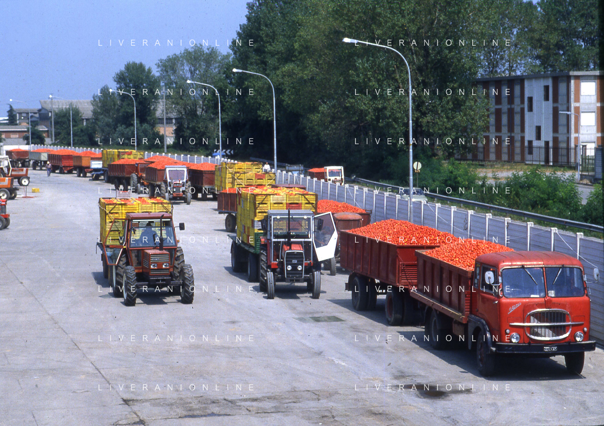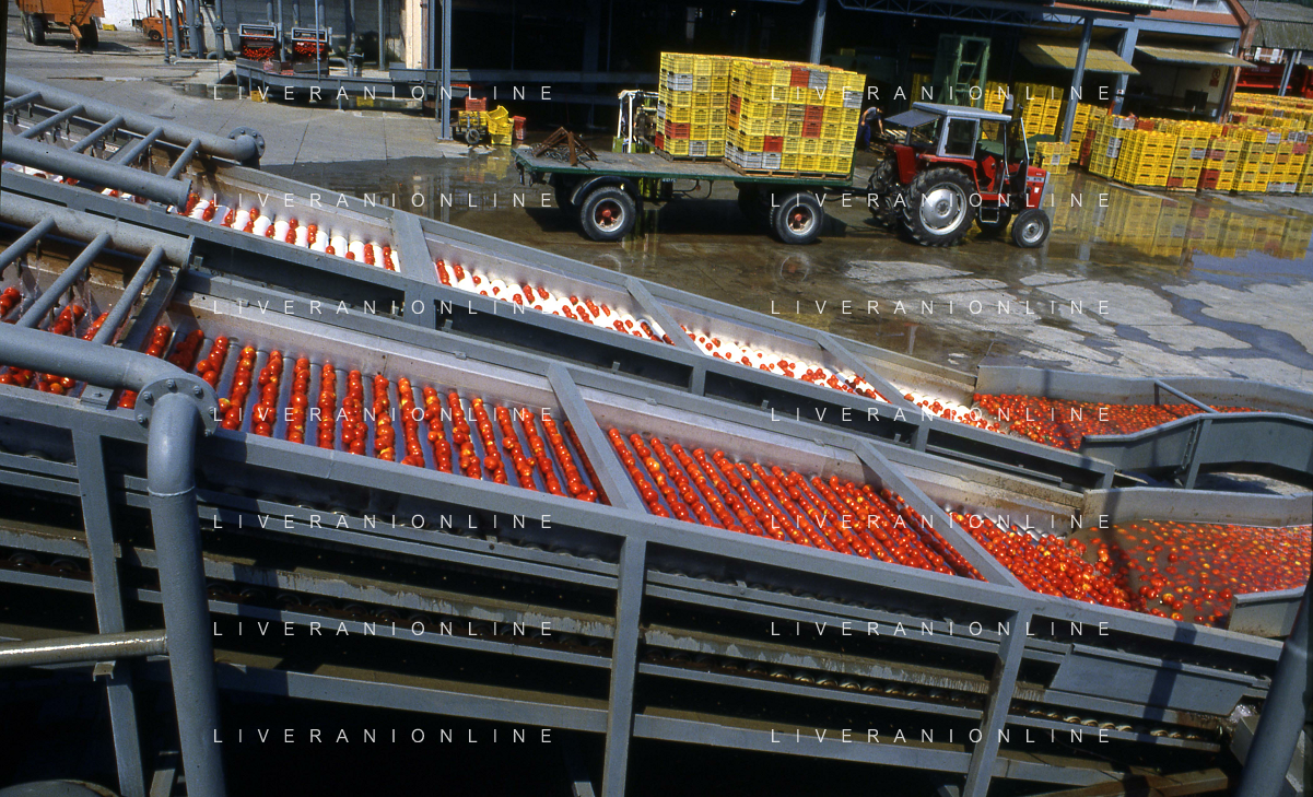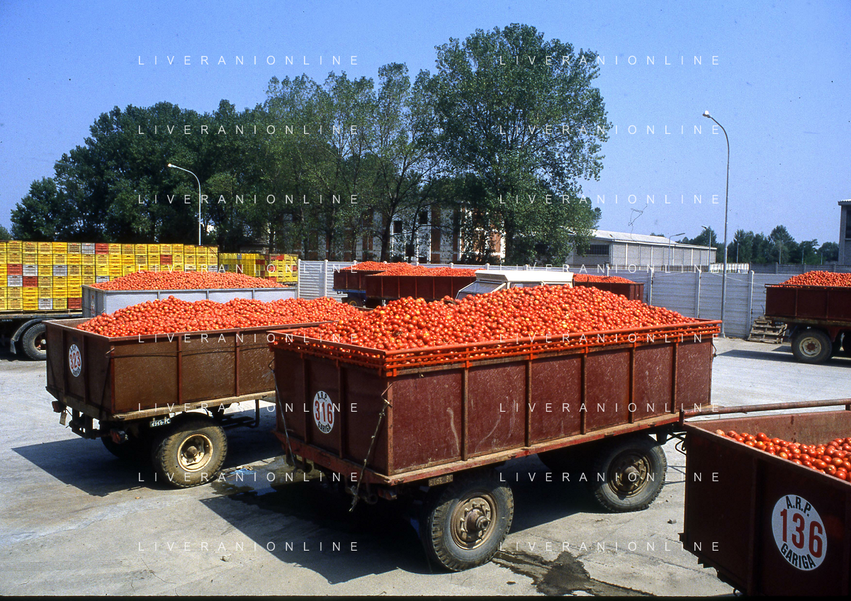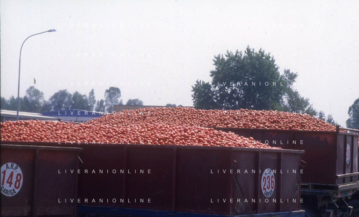 1983 PIACENZA ARP GARIGA STABILIMENTO PER LA PRODUZIONE DEI POMODORI IN SCATOLA PASSATE DI POMODORI E PELATI NELLA FOTO IMMAGINI DELLA PRODUZIONE DI SALSE DI POMODORO,PELATI,PASSATE DI POMODORO AG ALDO LIVERANI SAS
