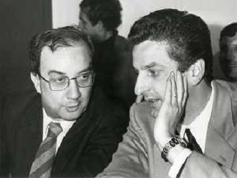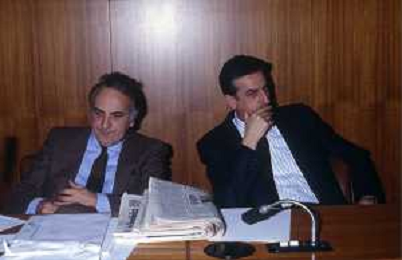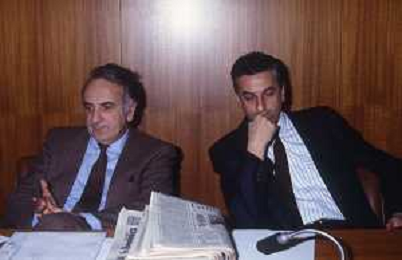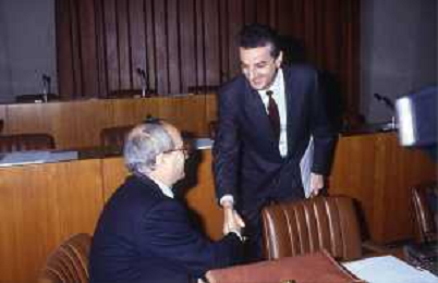 RETROSPETTIVA UGO FINETTI POLITICO NELLA FOTO UGO FINETTI A MILANO NELL'ANNO 1989 CON TACCONI AG ALDO LIVERANI SAS