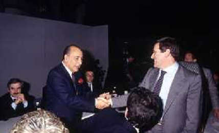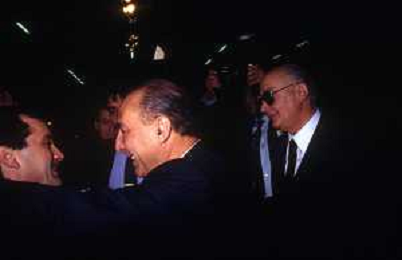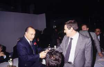RETROSPETTIVA ANTONIO CARIGLIA POLITICO NELLA FOTO ANTONIO CARIGLIA A RIMINI AL CONGRESSO DEL PARTITO SOCIALISTA DEMOCRATICO PSDI NELL'ANNO 1989 CON ARNALDO FORLANI AG ALDO LIVERANI SAS