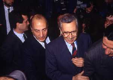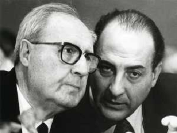 RETROSPETTIVA ANTONIO CARIGLIA POLITICO NELLA FOTO ANTONIO CARIGLIA A MILANO NELL'ANNO 1991 CON ENRICO FERRI AG ALDO LIVERANI SAS