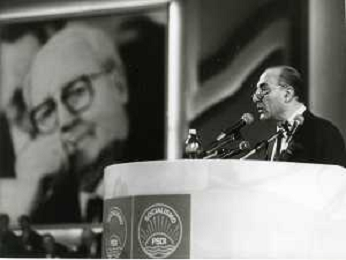 RETROSPETTIVA ANTONIO CARIGLIA POLITICO NELLA FOTO ANTONIO CARIGLIA A RIMINI AL CONGRESSO DEL PARTITO SOCIALISTA DEMOCRATICO PSDI NELL'ANNO 1989 AG ALDO LIVERANI SAS