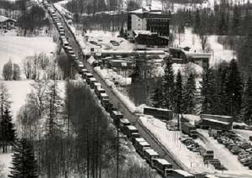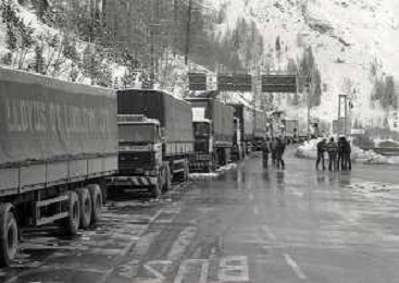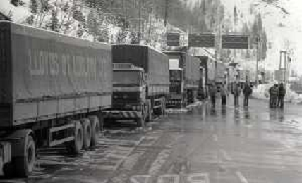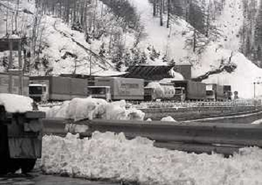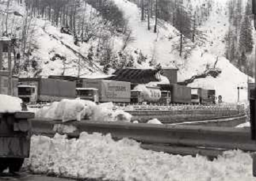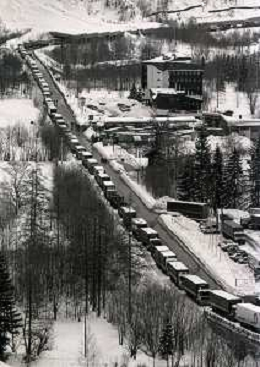 1984 DOGANA AL MONTE BIANCO FILA DI TIR PER LO SCIOPERO DEI DOGA