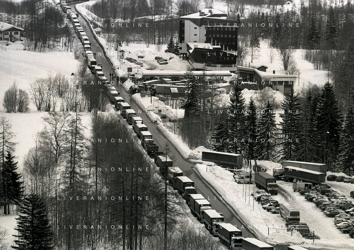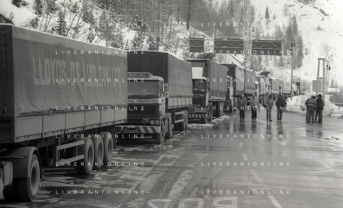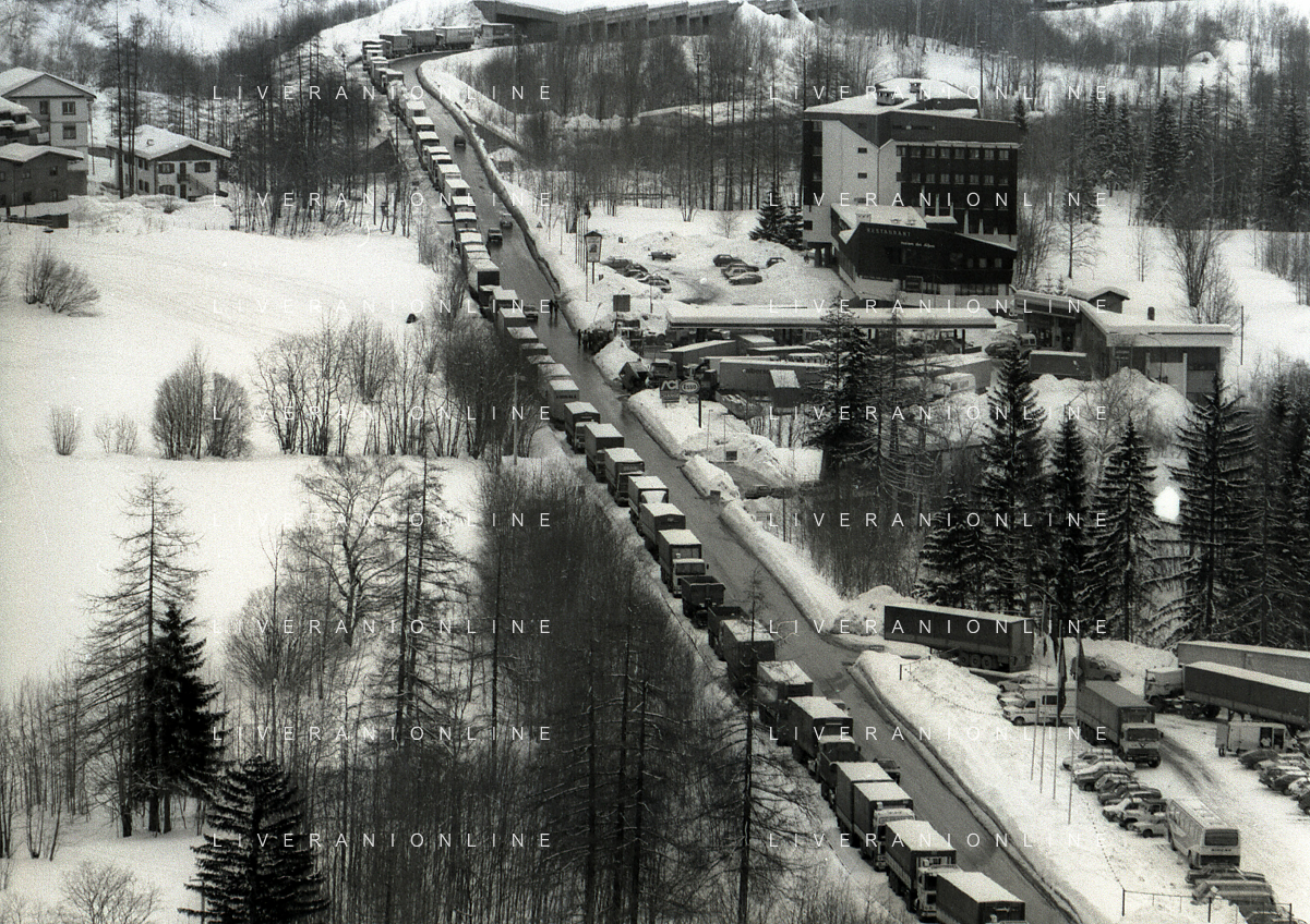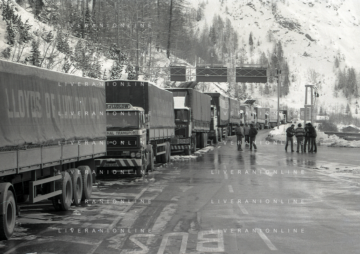 1984 DOGANA AL MONTE BIANCO FILA DI TIR PER LO SCIOPERO DEI DOGANIERI AG ALDO LIVERANI SAS