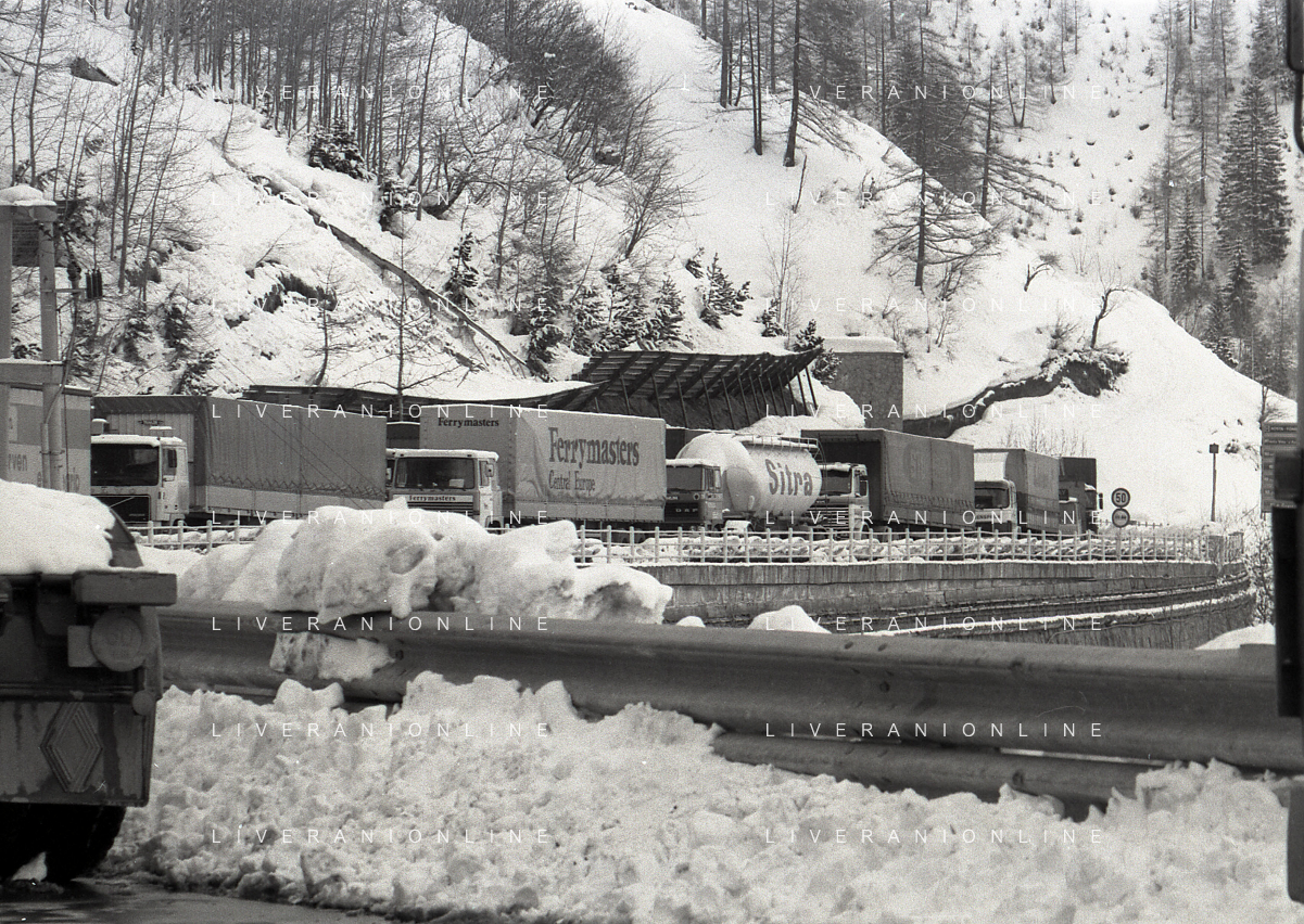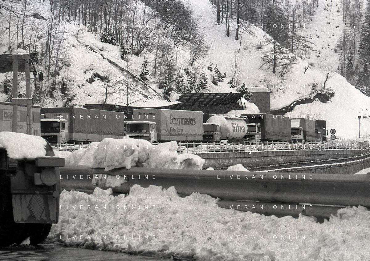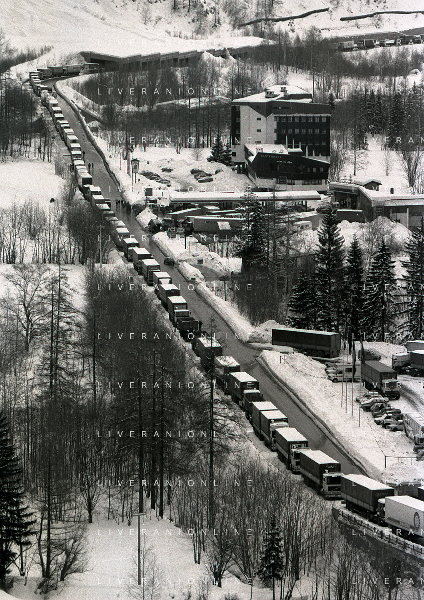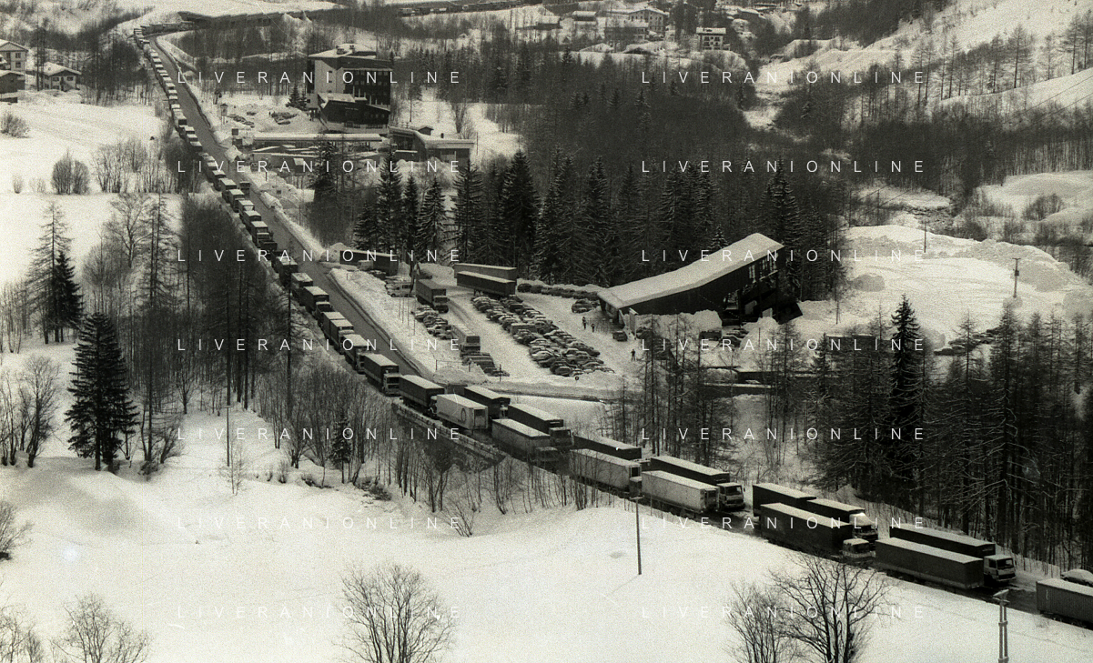 1984 DOGANA AL MONTE BIANCO FILA DI TIR PER LO SCIOPERO DEI DOGANIERI AG ALDO LIVERANI SAS