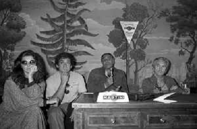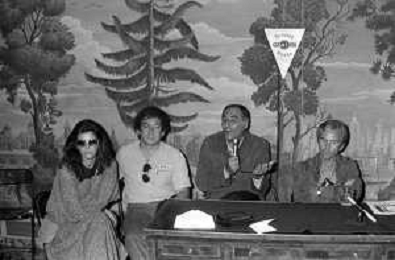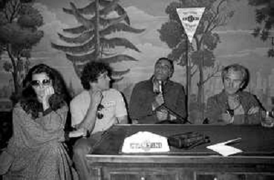 RETROSPETTIVA CLAUDIA MORI ATTRICE E CANTANTE NELLA FOTO NEL 1981 A MILANO TERRAZZA MARTINI ALLA PRESENTAZIONE DE 'LA LOCANDIERA' CON L'ATTORE GIANNI CAVINA, LO SCENEGGIATORE LEONARDO BENVENUTI E IL REGISTA PAOLO CAVARA ©Archivio Giovanni Liverani/AGENZIA ALDO LIVERANI SAS