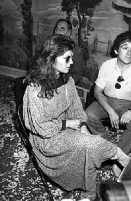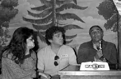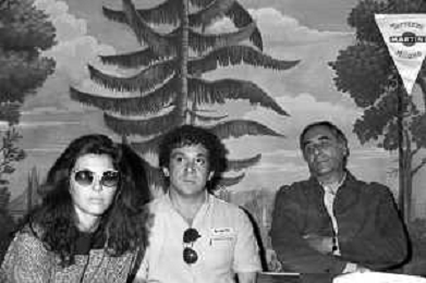 RETROSPETTIVA CLAUDIA MORI ATTRICE E CANTANTE NELLA FOTO NEL 1981 A MILANO TERRAZZA MARTINI ALLA PRESENTAZIONE DE 'LA LOCANDIERA' CON L'ATTORE GIANNI CAVINA, LO SCENEGGIATORE LEONARDO BENVENUTI ©Archivio Giovanni Liverani/AGENZIA ALDO LIVERANI SAS