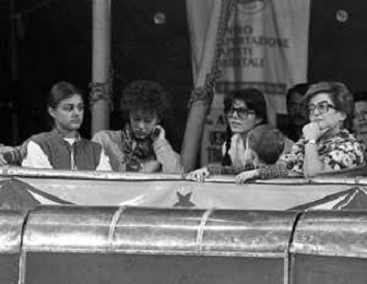 RETROSPETTIVA CLAUDIA MORI ATTRICE E CANTANTE NELLA FOTO CON LA FIGLIA ROSITA CELENTATO, PARIDE ORFEI CON LA MADRE ANITA GAMBARUTTI, NEL 1981 A MILANO AL CIRCO ORFEI ©Archivio Giovanni Liverani/AGENZIA ALDO LIVERANI SAS