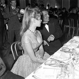 RETROSPETTIVA BRIGITTE BARDOT ATTRICE FRANCESE NELLA FOTO AL GRAN GALA' DEL CINEMA AL GRAND HOTEL DI ROMA 14.01.1956 CON GABRIELE FERZETTI ©Archivio Giovanni Liverani/AGENZIA ALDO LIVERANI SAS