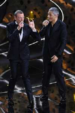 Fiorello SX e Amadeus DX 72mo Festival della Canzone Italiana Sanremo 2022 - Prima Serata Teatro Ariston - Sanremo (IM) 01-02-2022 foto Roberto Garavaglia/ag. Aldo Liverani sas /AGENZIA ALDO LIVERANI SAS