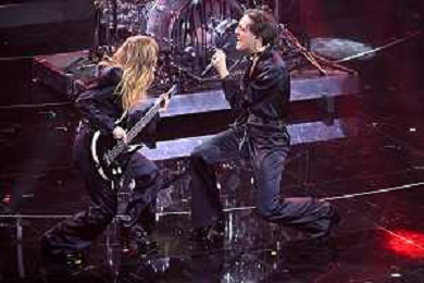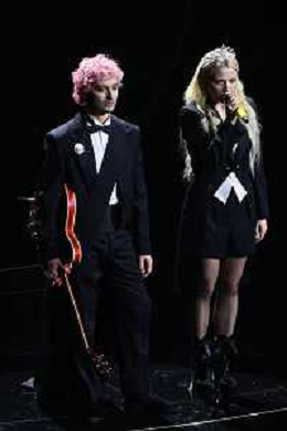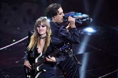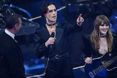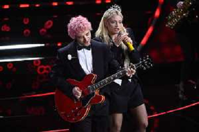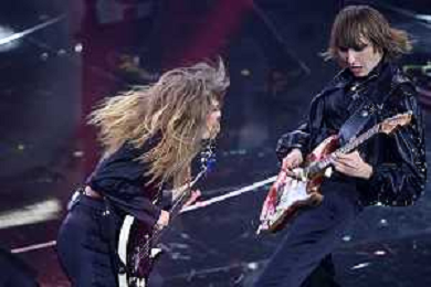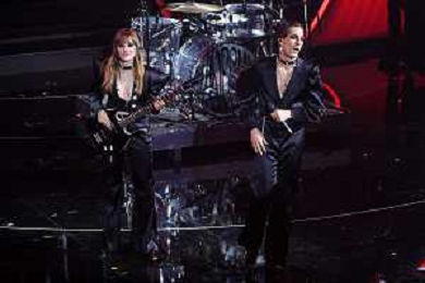 Maneskin, Victoria De Angelis SX basso e Damiano David DX voce 72mo Festival della Canzone Italiana Sanremo 2022 - Prima Serata Teatro Ariston - Sanremo (IM) 01-02-2022 foto Roberto Garavaglia/ag. Aldo Liverani sas /AGENZIA ALDO LIVERANI SAS