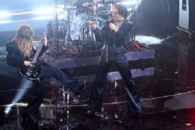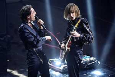 Maneskin, Damiano David SX voce e Thomas Raggi DX chitarra 72mo Festival della Canzone Italiana Sanremo 2022 - Prima Serata Teatro Ariston - Sanremo (IM) 01-02-2022 foto Roberto Garavaglia/ag. Aldo Liverani sas /AGENZIA ALDO LIVERANI SAS