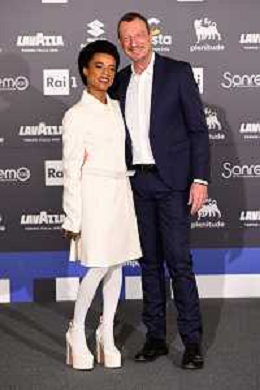 Amadeus e Lorena Cesarini 72mo Festival della Canzone Italiana Sanremo 2022 - Photocall del 2 febbraio Casino’ Municipale - Sanremo (IM) 02-02-2022 foto Roberto Garavaglia/ag. Aldo Liverani sas
