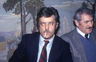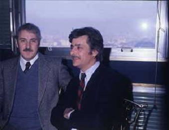 RETROSPETTIVA GIANCARLO GIANNINI ATTORE NELLA FOTO GIANCARLO GIANNINI CON GRIGORIJ CIUKHAI A TERRAZZA MARTINI MILANO AG ALDO LIVERANI SAS