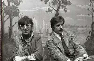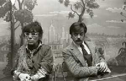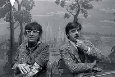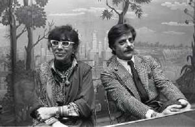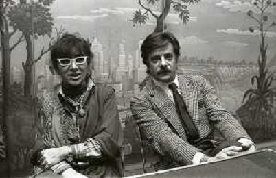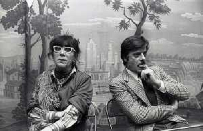 RETROSPETTIVA GIANCARLO GIANNINI ATTORE NELLA FOTO GIANCARLO GIANNINI CON LINA WERTMULLER A MILANO TERRAZZA MARTINI AG ALDO LIVERANI SAS