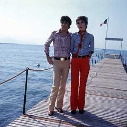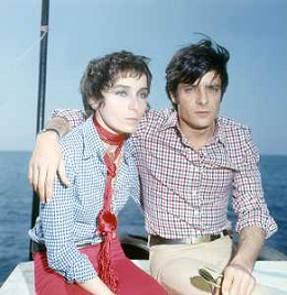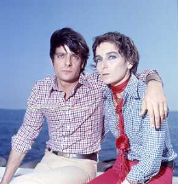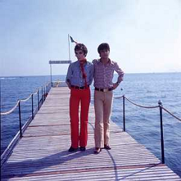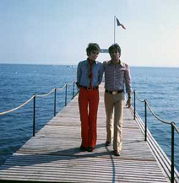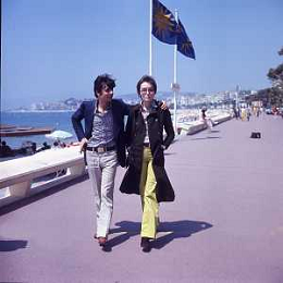RETROSPETTIVA GIANCARLO GIANNINI ATTORE NELLA FOTO GIANCARLO GIANNINI CON LA MOGLIE LIVIA GIAMPALMO A CANNES NELL'ANNO 1973 AG ALDO LIVERANI SAS