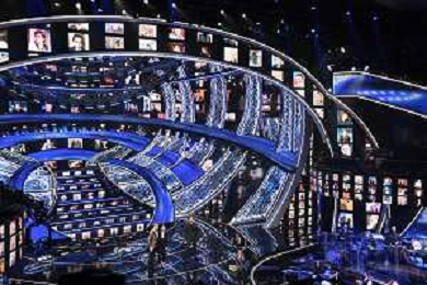 la scenografia del palco con le foto degli autori di tante canzoni italiane 72mo Festival della Canzone Italiana Sanremo 2022 - Quarta Serata Teatro Ariston - Sanremo (IM) 04-02-2022 foto Roberto Garavaglia/ag. Aldo Liverani sas/ AGENZIA ALDO LIVERANI SAS