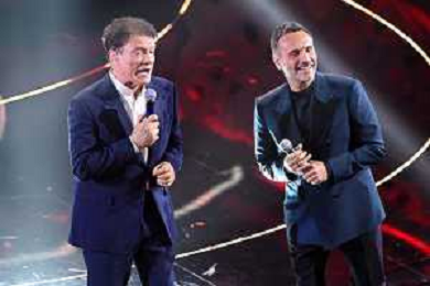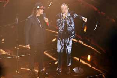 Gianluca Grignani SX e Irama DX 72mo Festival della Canzone Italiana Sanremo 2022 - Quarta Serata Teatro Ariston - Sanremo (IM) 04-02-2022 foto Roberto Garavaglia/ag. Aldo Liverani sas/ AGENZIA ALDO LIVERANI SAS