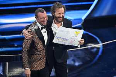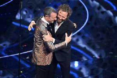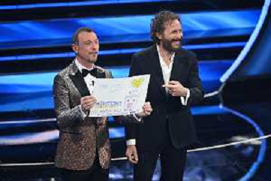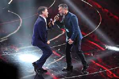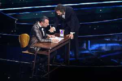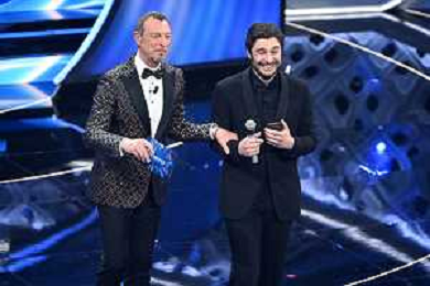 Amadeus e Rkomi 72mo Festival della Canzone Italiana Sanremo 2022 - Quarta Serata Teatro Ariston - Sanremo (IM) 04-02-2022 foto Roberto Garavaglia/ag. Aldo Liverani sas/ AGENZIA ALDO LIVERANI SAS