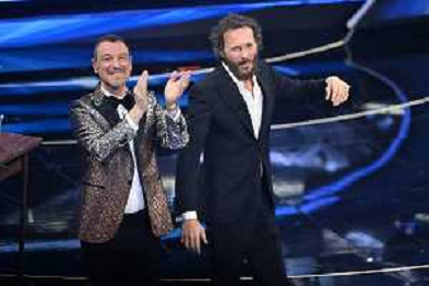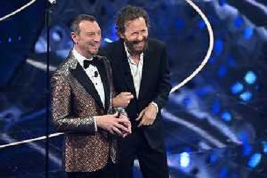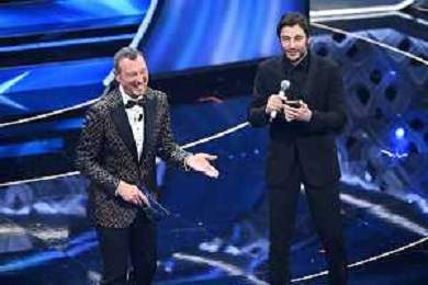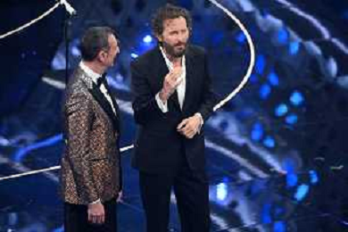 Amadeus SX e Lino Guanciale DX 72mo Festival della Canzone Italiana Sanremo 2022 - Quarta Serata Teatro Ariston - Sanremo (IM) 04-02-2022 foto Roberto Garavaglia/ag. Aldo Liverani sas/ AGENZIA ALDO LIVERANI SAS