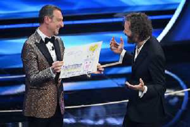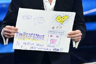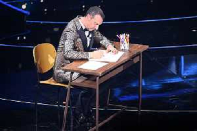 il disegno di Amadeus 72mo Festival della Canzone Italiana Sanremo 2022 - Quarta Serata Teatro Ariston - Sanremo (IM) 04-02-2022 foto Roberto Garavaglia/ag. Aldo Liverani sas/ AGENZIA ALDO LIVERANI SAS