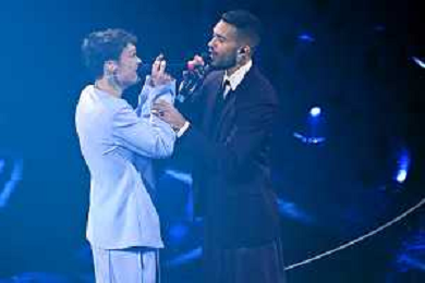 Blanco SX e Mahmood DX 72mo Festival della Canzone Italiana Sanremo 2022 - Quarta Serata Teatro Ariston - Sanremo (IM) 04-02-2022 foto Roberto Garavaglia/ag. Aldo Liverani sas/ AGENZIA ALDO LIVERANI SAS
