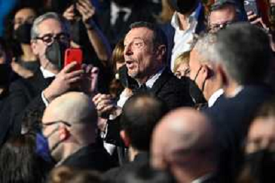 Amadeus tra il pubblico della galleria 72mo Festival della Canzone Italiana Sanremo 2022 - Quinta Serata Teatro Ariston - Sanremo (IM) 05-02-2022 foto Roberto Garavaglia/ag. Aldo Liverani sas /AGENZIA ALDO LIVERANI SAS