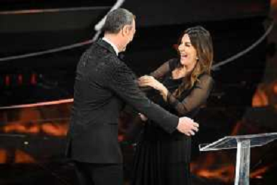 Amadeus e Sabrina Ferilli 72mo Festival della Canzone Italiana Sanremo 2022 - Quinta Serata Teatro Ariston - Sanremo (IM) 05-02-2022 foto Roberto Garavaglia/ag. Aldo Liverani sas /AGENZIA ALDO LIVERANI SAS
