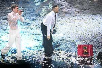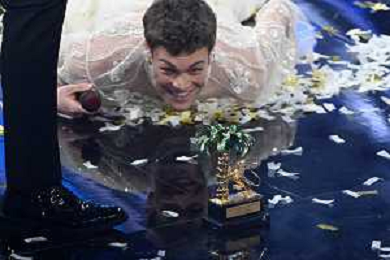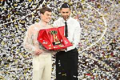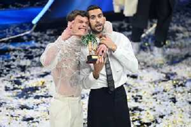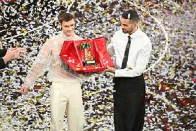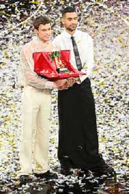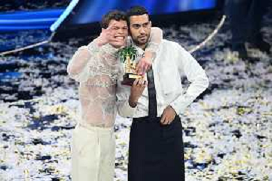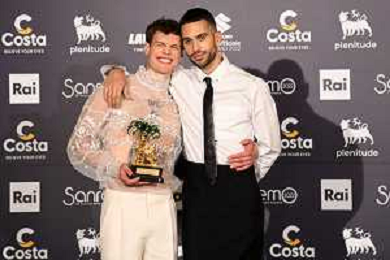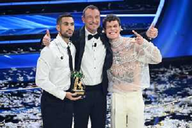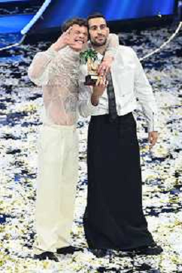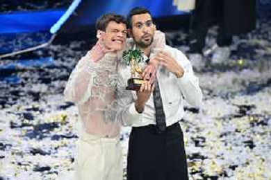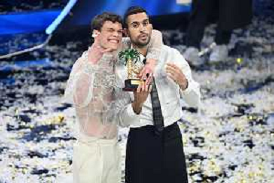 Blanco SX e Mahmood DX vincitori del Festival di Sanremo 2022 72mo Festival della Canzone Italiana Sanremo 2022 - Quinta Serata Teatro Ariston - Sanremo (IM) 05-02-2022 foto Roberto Garavaglia/ag. Aldo Liverani sas /AGENZIA ALDO LIVERANI SAS