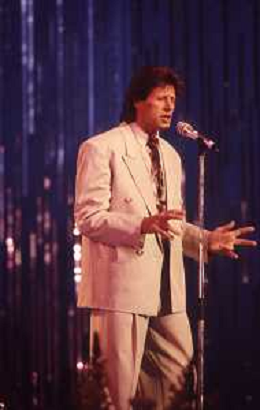RETROSPETTIVA SANDRO GIACOBBE CANTANTE NELLA FOTO SANDRO GIACOBBE NELL'ANNO 1990 NELLA TRASMISSIONE TELEVISIVA “C'ERA UNA VOLTA IL FESTIVAL“ AG ALDO LIVERANI SAS