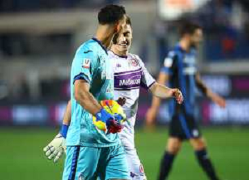 Atalanta-Fiorentina Coppa Italia Frecciarossa 2021/2022 Quarti di finale Bergamo, 10 Febbraio 2022 Nella foto: Krzysztof Piatek e Juan Musso Ph. Soli - Ag. Aldo Liverani /AGENZIA ALDO LIVERANI SAS