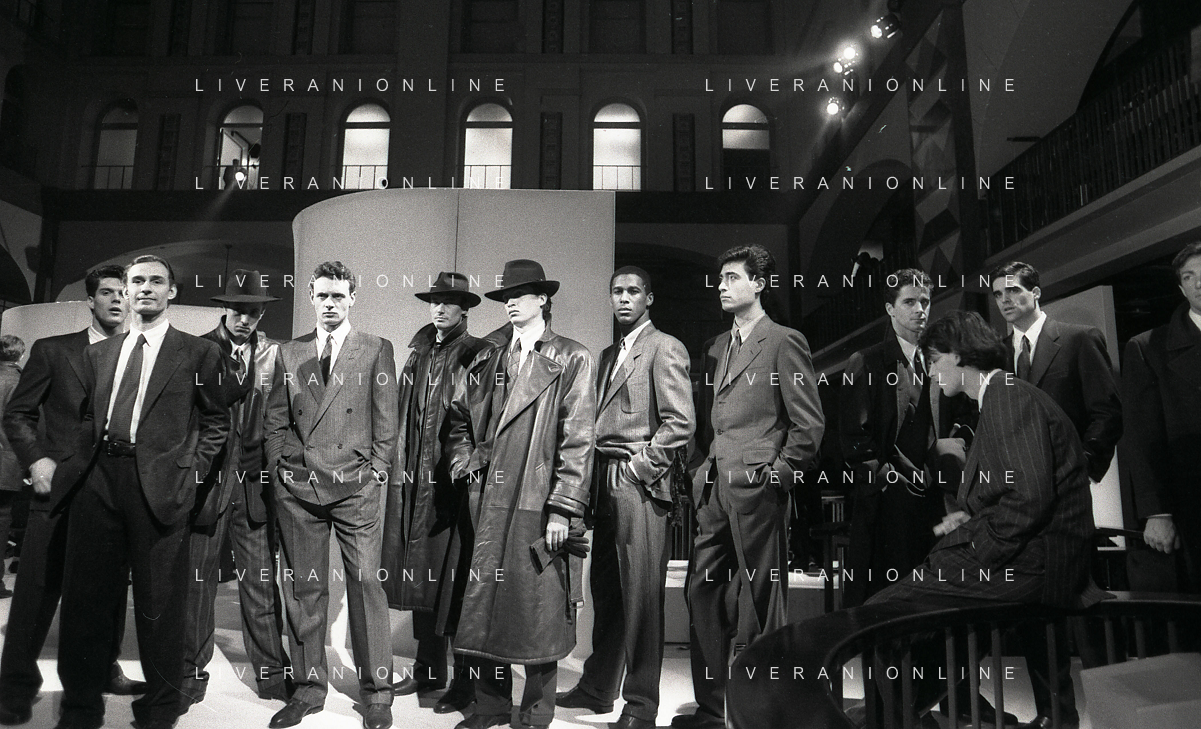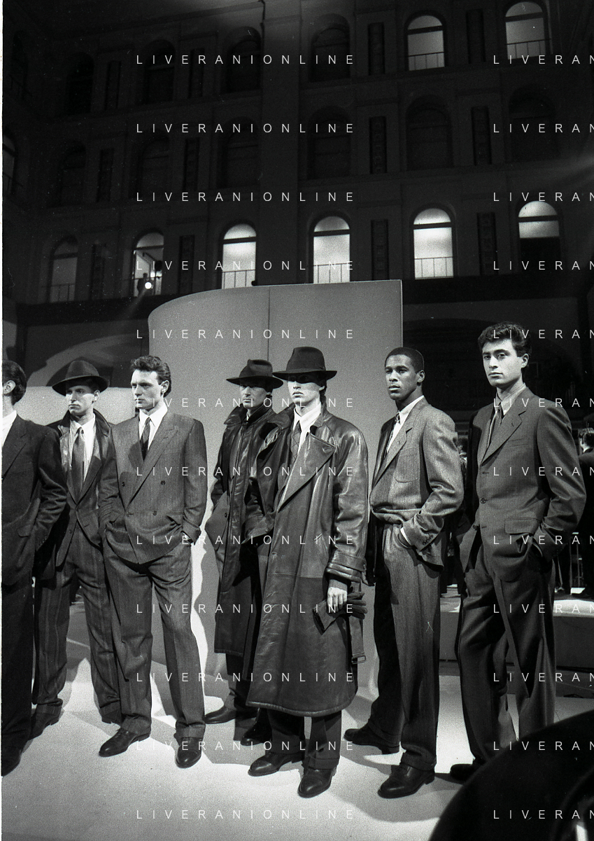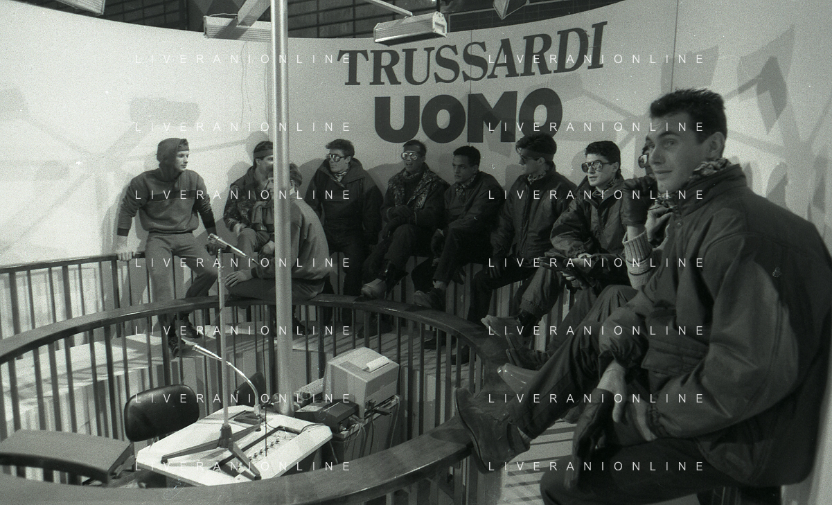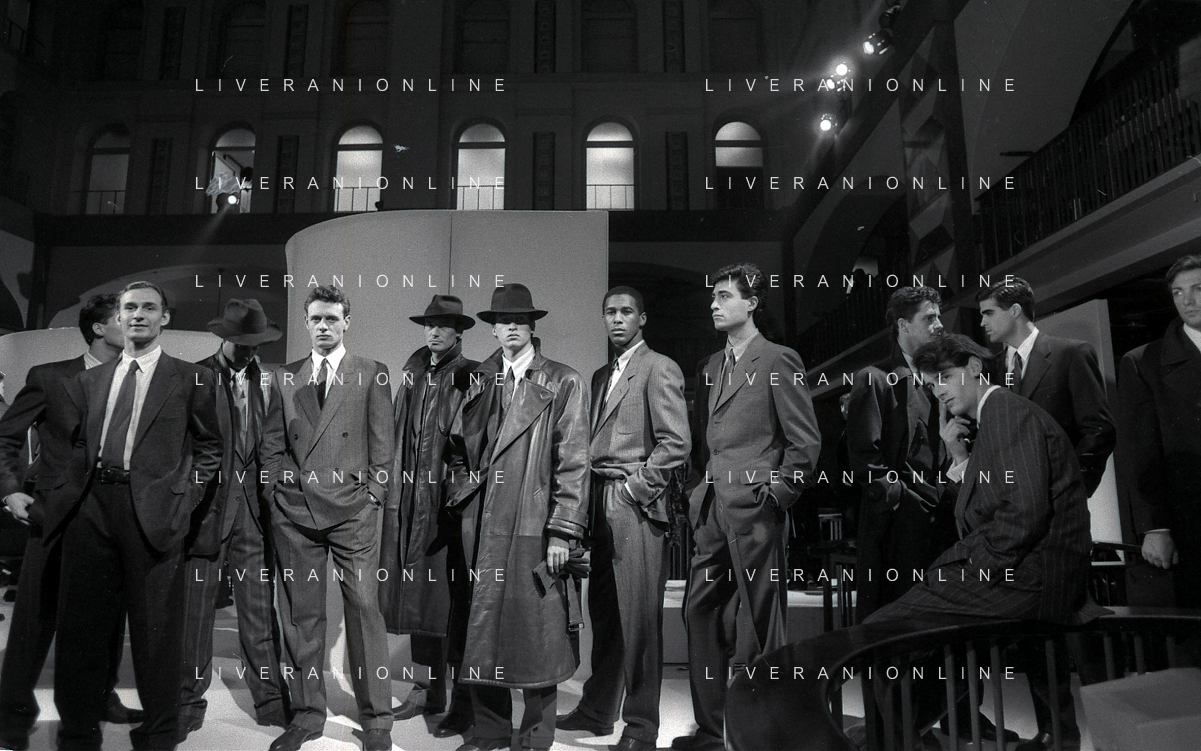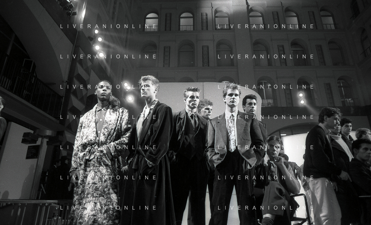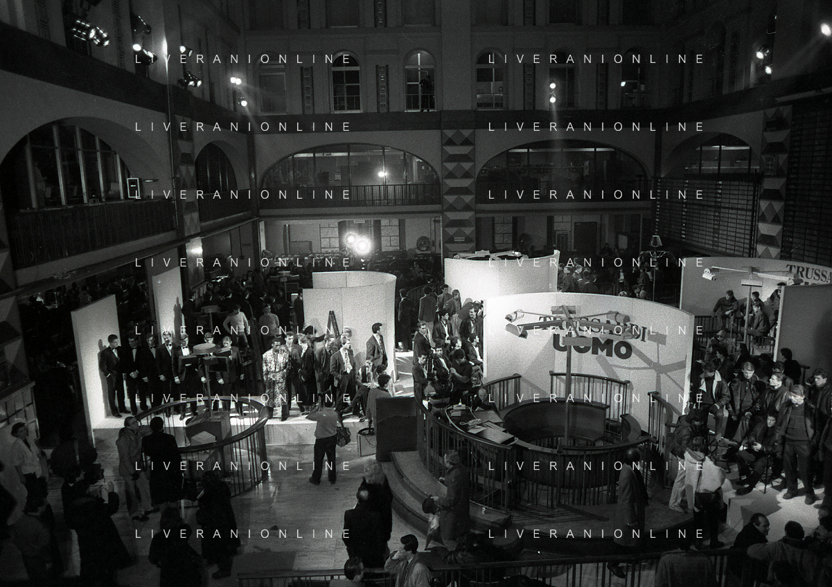1985 MILANO -BORSA ITALIANA PIAZZA DEGLI AFFARI SFILATA DI MODA TRUSSARDI NELLA FOTO LA SFILATA DI MODA TRUSSARDI ALLA BORSA ITALIANA AG ALDO LIVERANI SAS