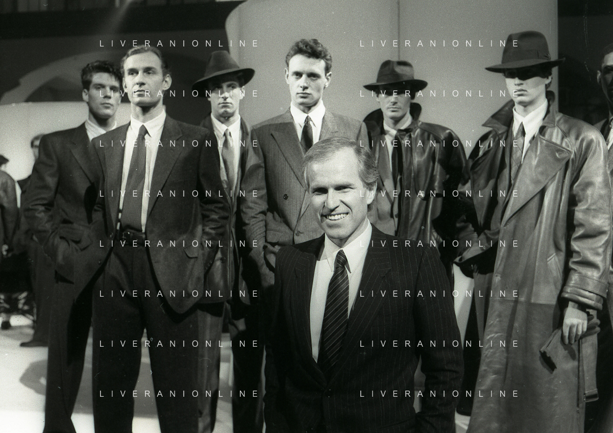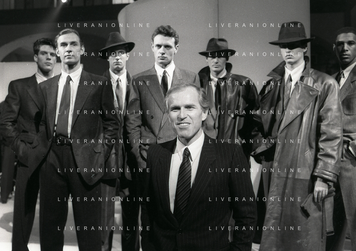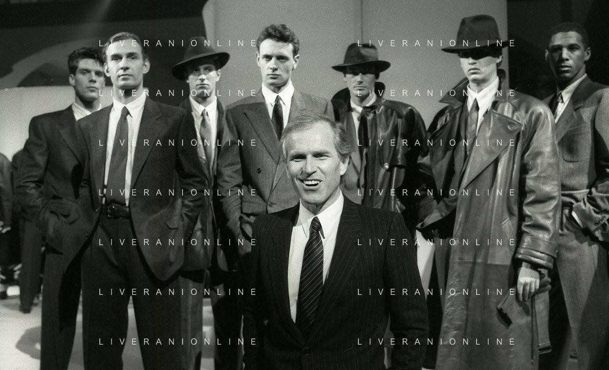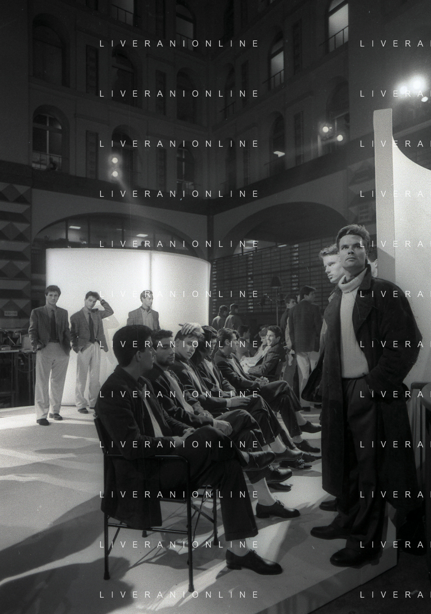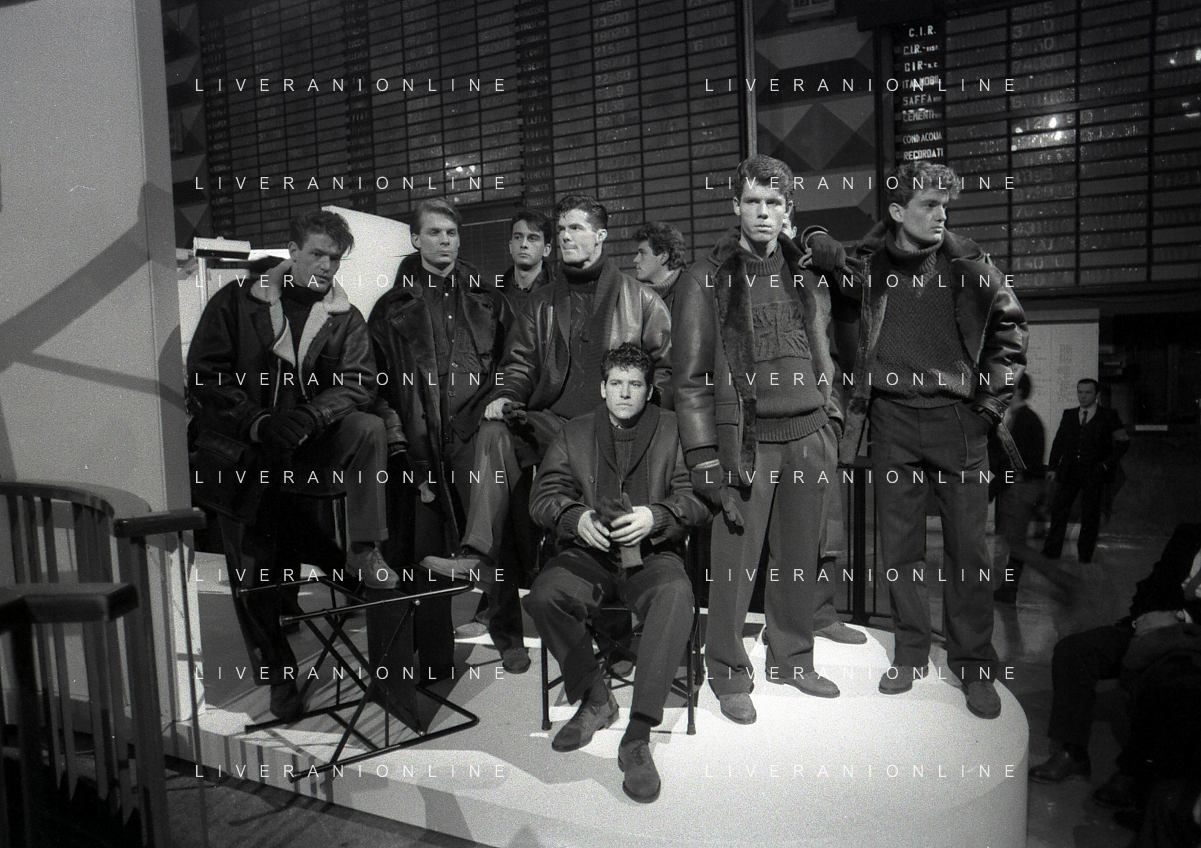 1985 MILANO -BORSA ITALIANA PIAZZA DEGLI AFFARI SFILATA DI MODA TRUSSARDI NELLA FOTO LA SFILATA DI MODA TRUSSARDI ALLA BORSA ITALIANA AG ALDO LIVERANI SAS