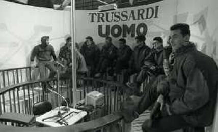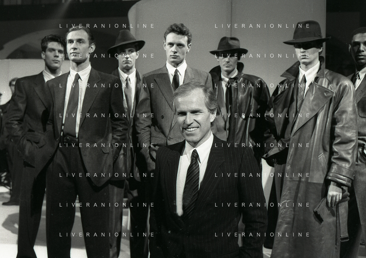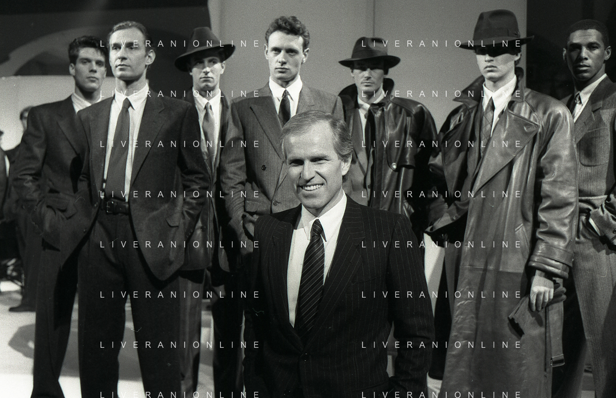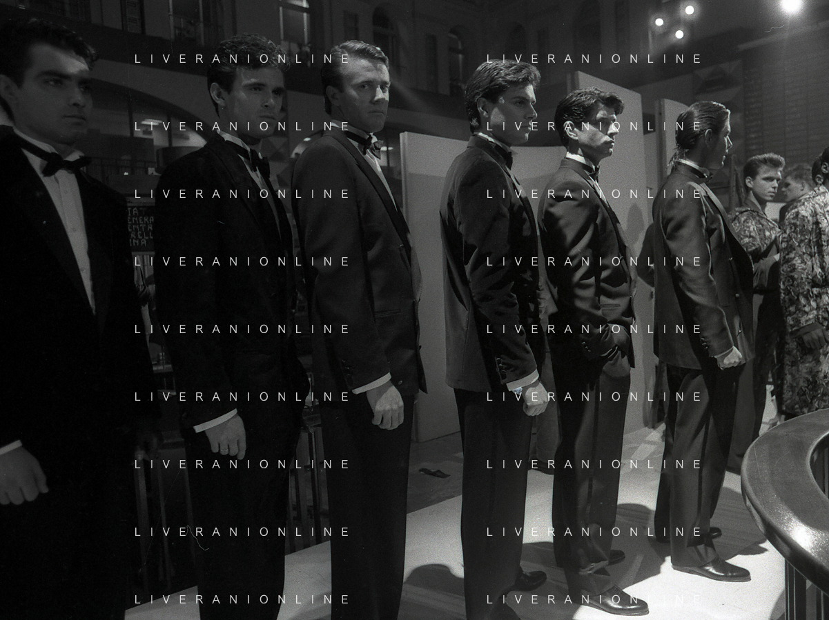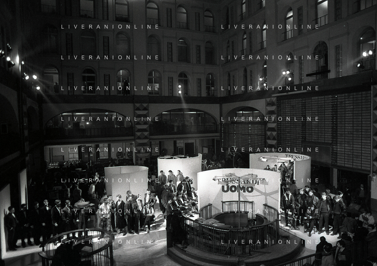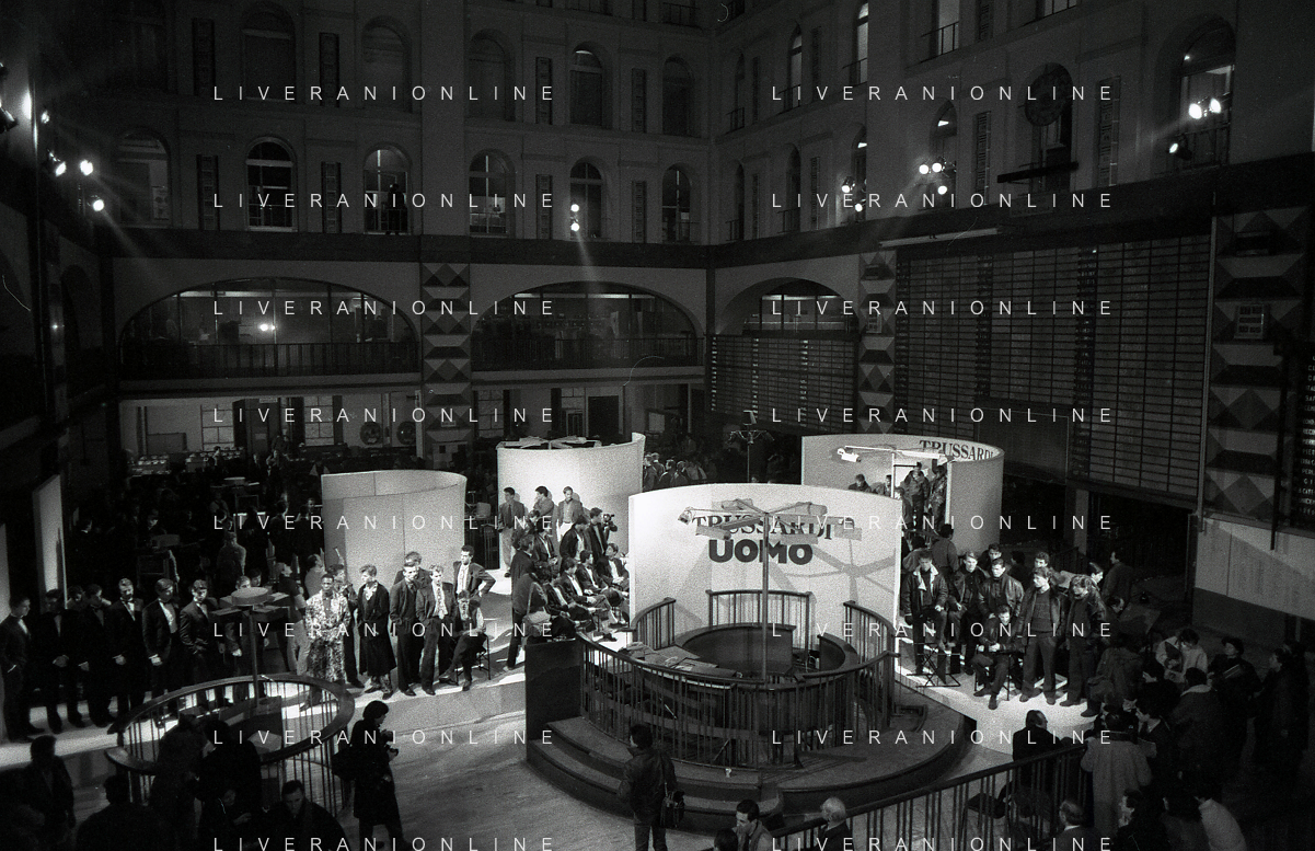 1985 MILANO -BORSA ITALIANA PIAZZA DEGLI AFFARI SFILATA DI MODA TRUSSARDI NELLA FOTO LA SFILATA DI MODA TRUSSARDI ALLA BORSA ITALIANA AG ALDO LIVERANI SAS