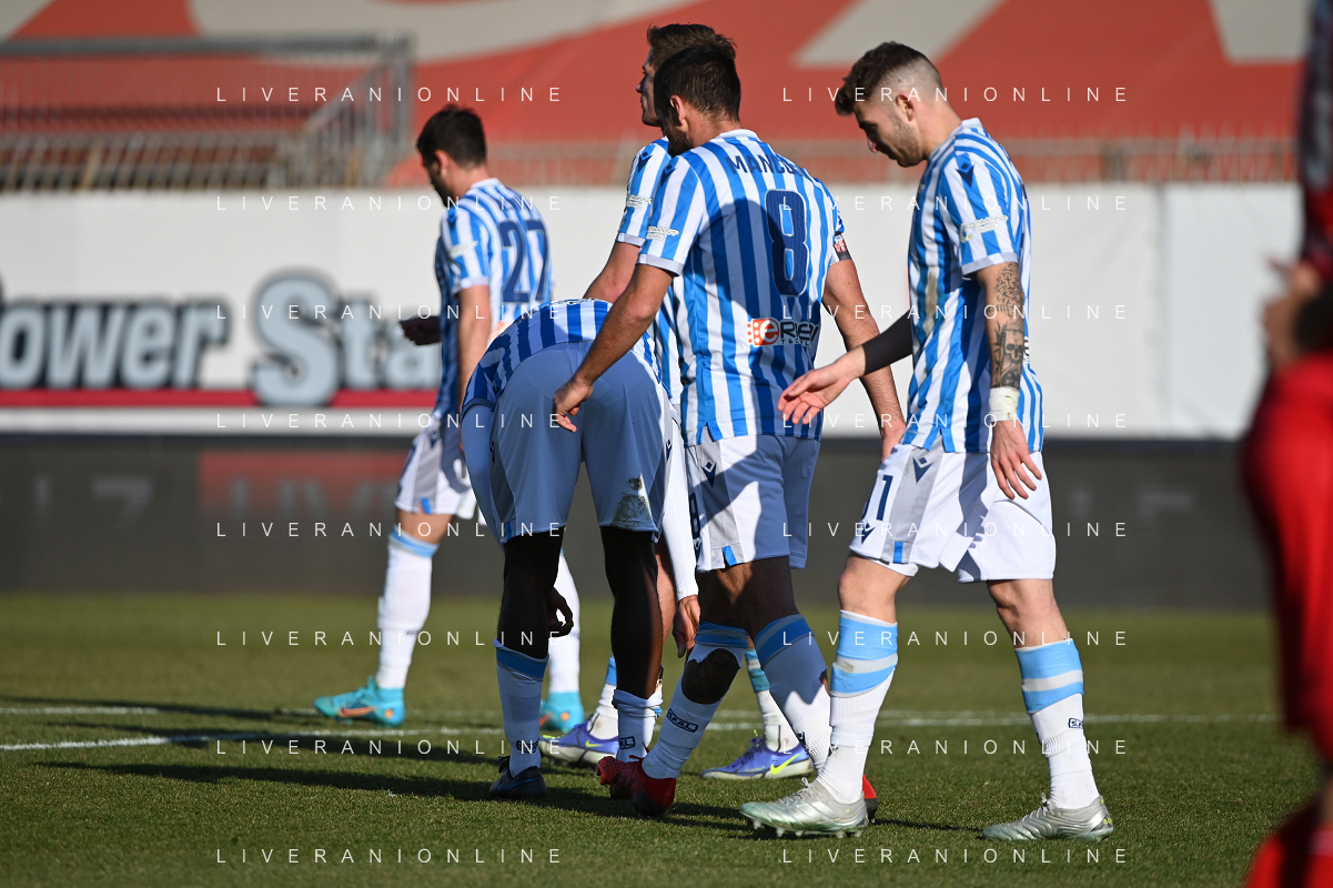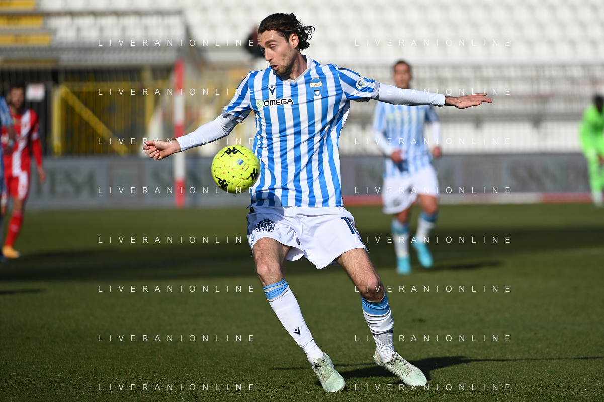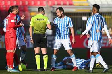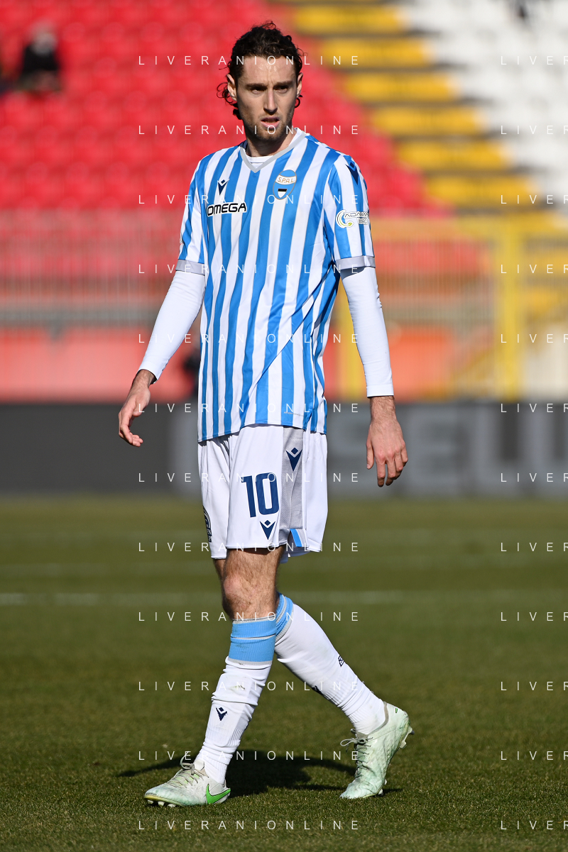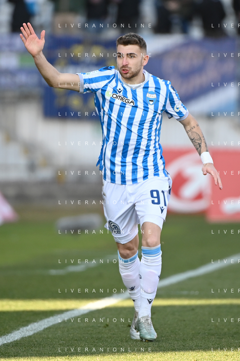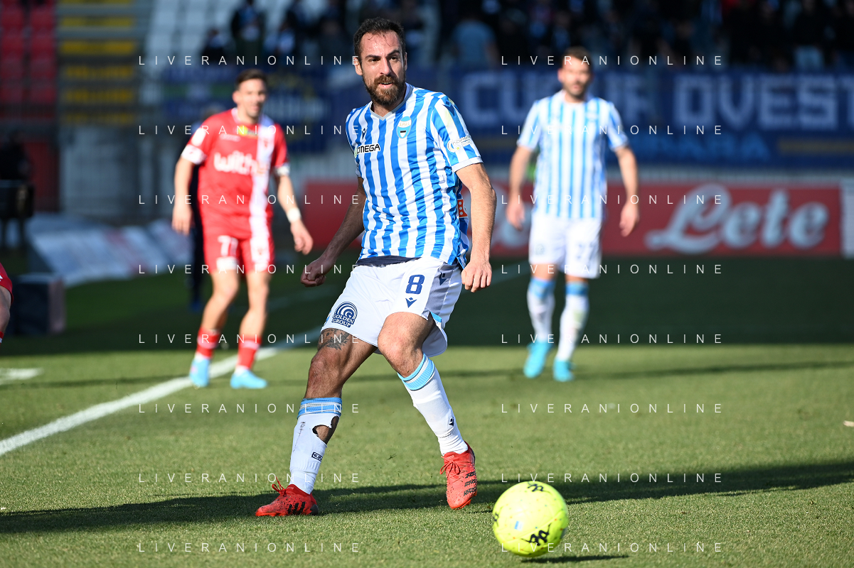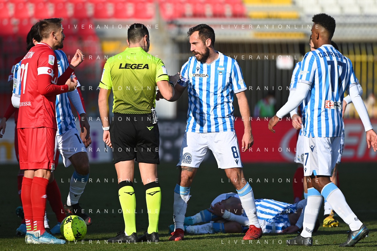 Marco Mancosu (Spal) protesta con l'arbitro Gianpiero Miele di Nola (NA) Monza vs Spal Campionato Serie BKT - 22a giornata Monza 12-02-2022 U-Power Stadium foto Roberto Garavaglia/ag. Aldo Liverani sas /AGENZIA ALDO LIVERANI SAS