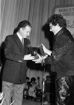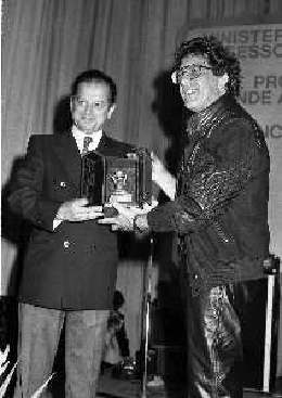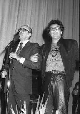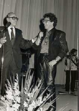 RETROSPETTIVA PEPPINO DI CAPRI CANTANTE NELLA FOTO PEPPINO DI CAPRI AL FESTIVAL DEL CINEMA DI SORRENTO NELL'ANNO 1981 CON LELLO BERSANI AG ALDO LIVERANI SAS