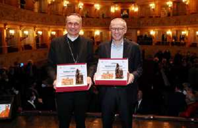 IMOLA 18 02 2022 "IMOLESI E NEL MONDO"DIALOGO CON STEFANO DOMENICALI PRESIDENTE DEL FORMULA ONE GROUP E CARDINALE MAURO GAMBETTI VICARIO GENERALE DI SUA SANTITA' PER LA CITTA' DEL VATICANO NELLA FOTO CARD MAURO GAMBETTI E SEFANO DOMENICALI FOTO GIANNI SANNA-AG ALDO LIVERANI SAS