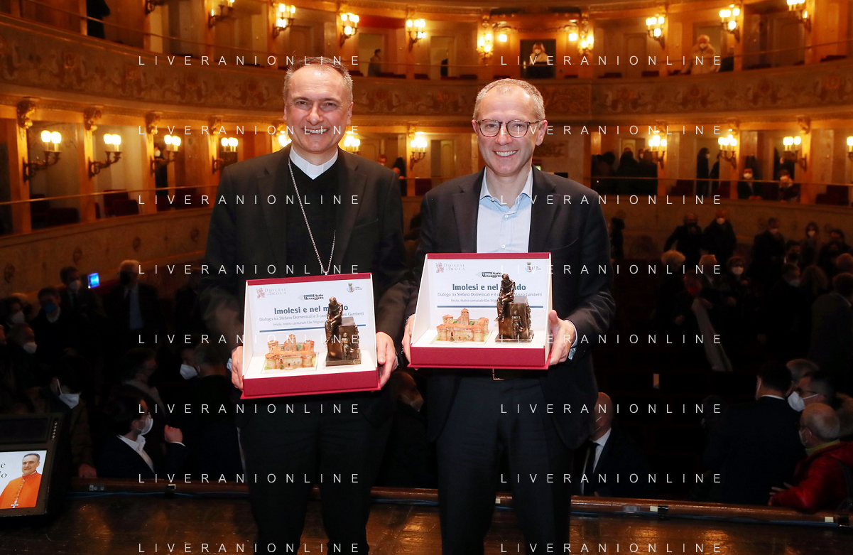 IMOLA 18 02 2022 "IMOLESI E NEL MONDO"DIALOGO CON STEFANO DOMENICALI PRESIDENTE DEL FORMULA ONE GROUP E CARDINALE MAURO GAMBETTI VICARIO GENERALE DI SUA SANTITA' PER LA CITTA' DEL VATICANO - 6 file