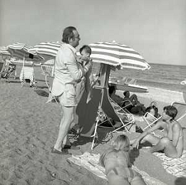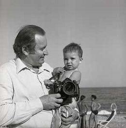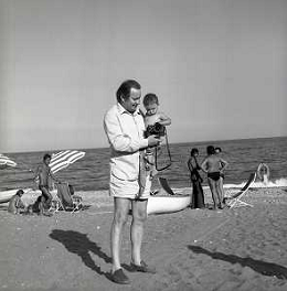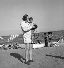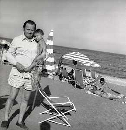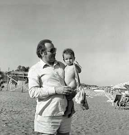RETROSPETTIVA ROMANO MUSSOLINI PIANISTA-COMPOSITORE E PITTORE ITALIANO NELLA FOTO ROMANO MUSSOLINI NELL'ANNO 1975 A TAORMINA CON LA FIGLIA RACHELE AG ALDO LIVERANI SAS