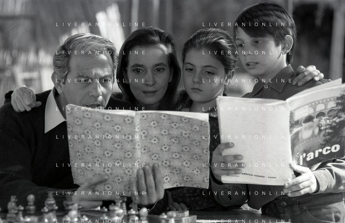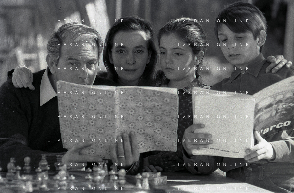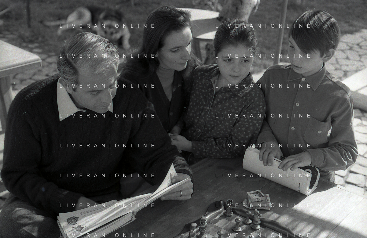 RETROSPETTIVA ENRICO MARIA SALERNO ATTORE NELLA FOTO ENRICO MARIA SALERNO CON LA MOGLIE FIORETTA PIERELLA E I FIGLI A ROMA IL GIORNO 05-04-1967 AG ALDO LIVERANI SAS