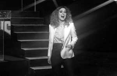 RETROSPETTIVA LORETTA GOGGI ATTRICE E CANTANTE NELLA FOTO IN TV MENTRE CANTA A TAM (TELE ALTO MILANESE) IL 29 MAGGIO 1980 ©Archivio Giovanni Liverani/AGENZIA ALDO LIVERANI SAS