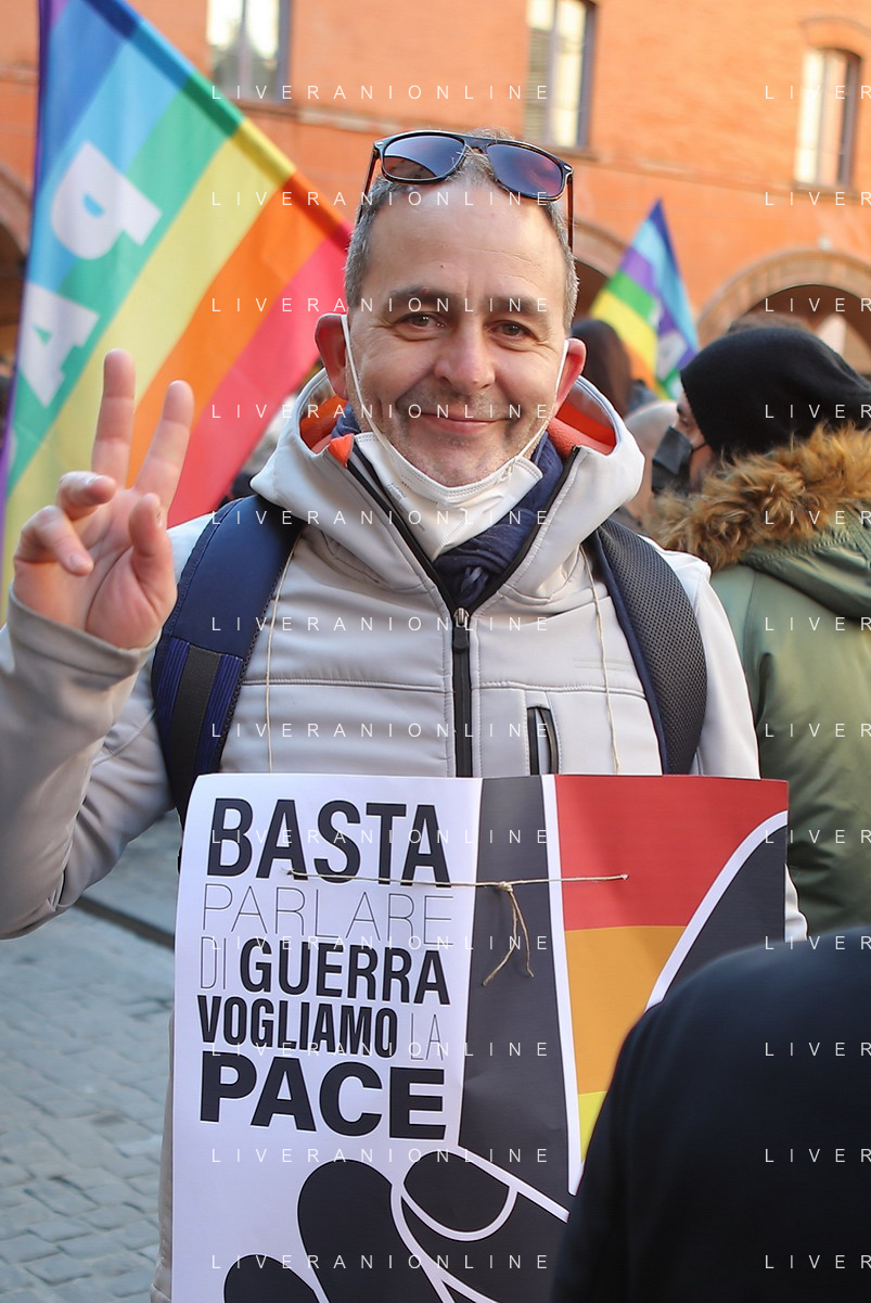 IMOLA 26 02 2022 PARTITO DEMOCRATICO CGIL CISL IN PIAZZA CADUTTI DELLA LIBERTA' CONTRO LA GUERRA IN UCRAINA NELLA FOTO UN IMOLESE FOTO GIANNI SANNA-AG ALDO LIVERANI SAS