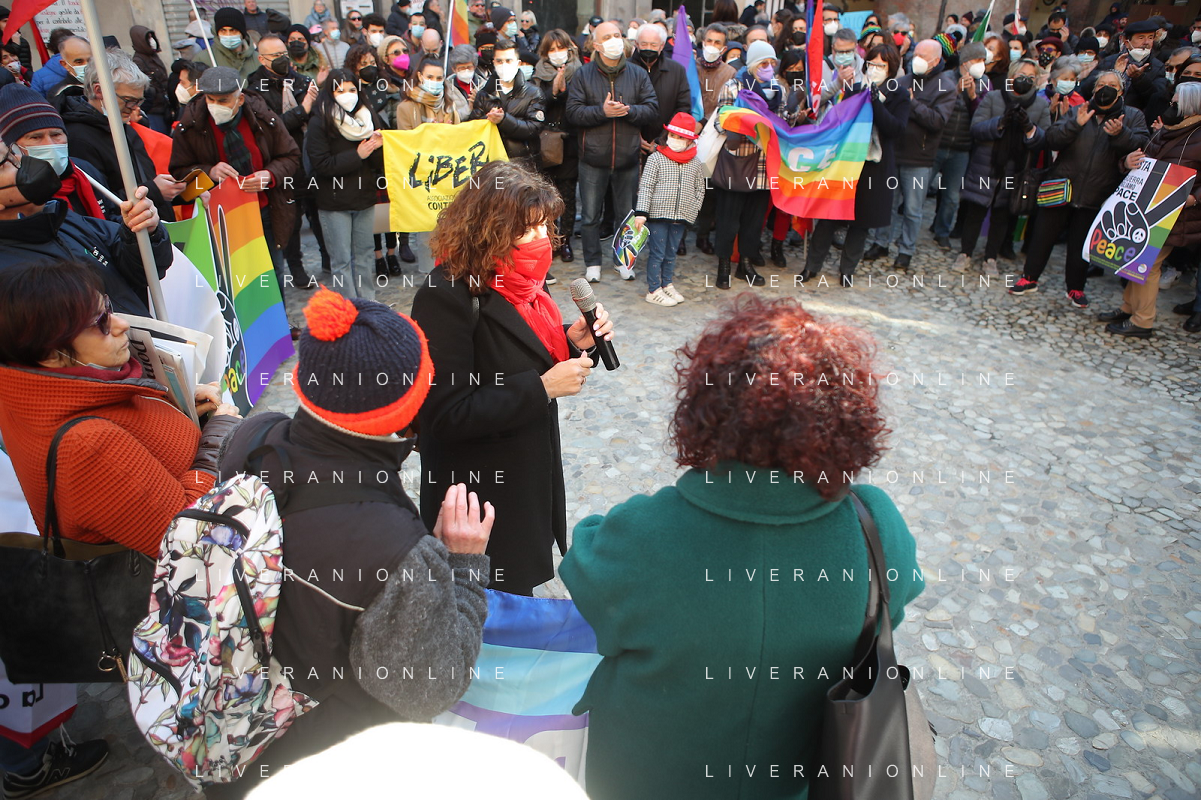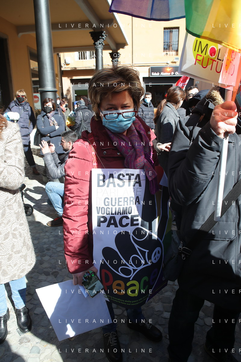 IMOLA 26 02 2022 PARTITO DEMOCRATICO CGIL CISL IN PIAZZA CADUTTI DELLA LIBERTA' CONTRO LA GUERRA IN UCRAINA NELLA FOTO MIRELLA COLLINA CGIL FOTO GIANNI SANNA-AG ALDO LIVERANI SAS